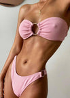 Ribbed Bandeau High Leg Bikini Set With O-Ring Detail