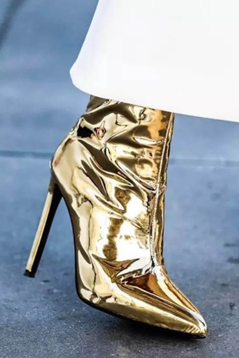 Metallic Gold Pointed Stiletto Heeled Ankle Boots