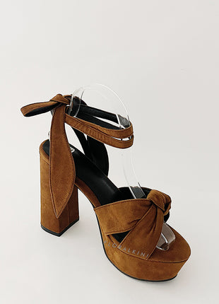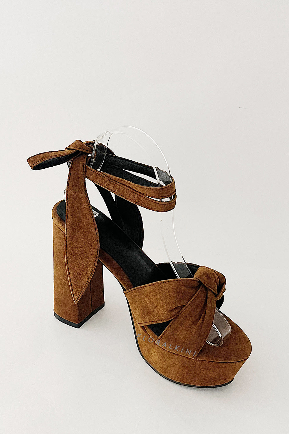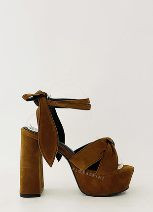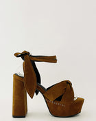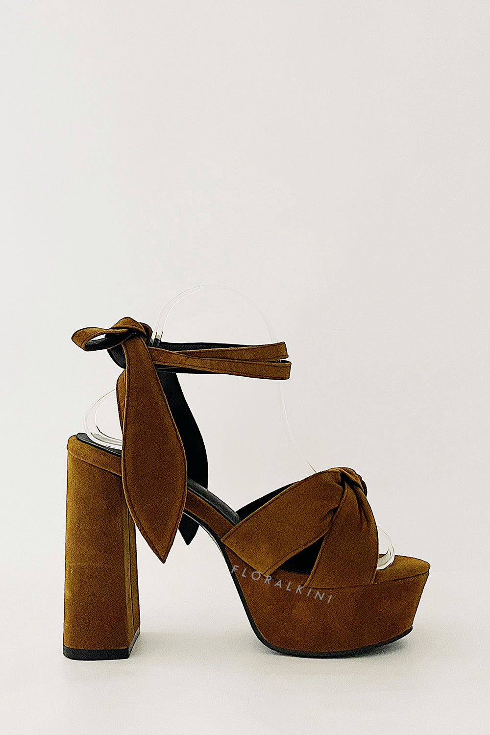 Knotted Ankle-Wrap Open Toe Platform Suede Sandals - Brown