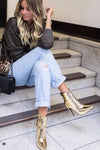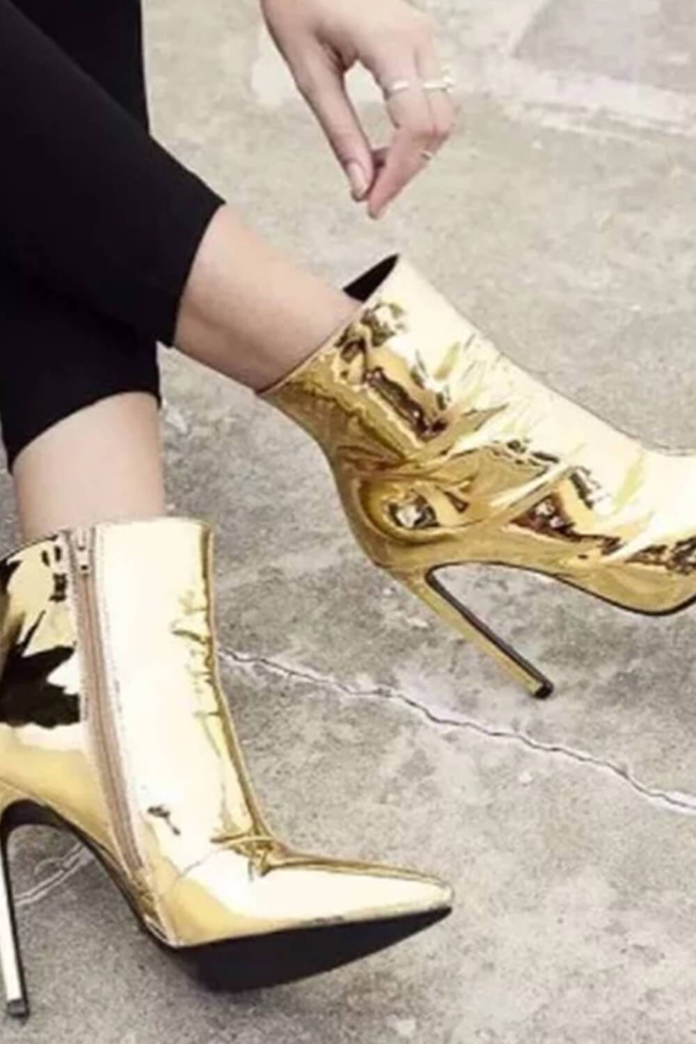 Metallic Gold Pointed Stiletto Heeled Ankle Boots