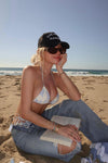 Light Blue Floral Print Crinkle Halter Tie Side Bikini Set