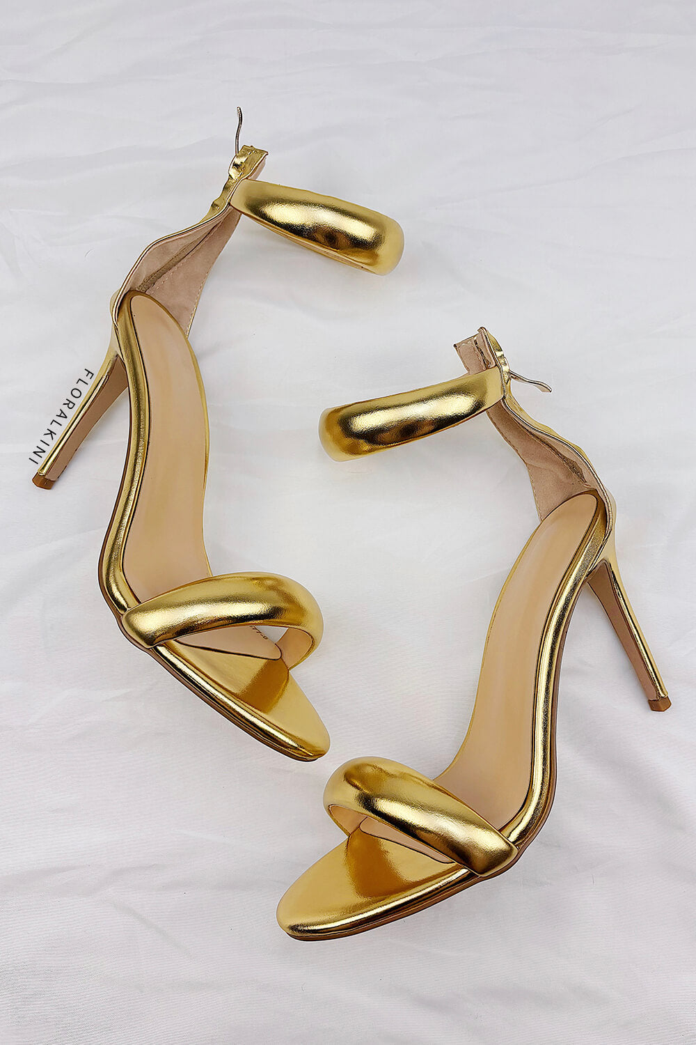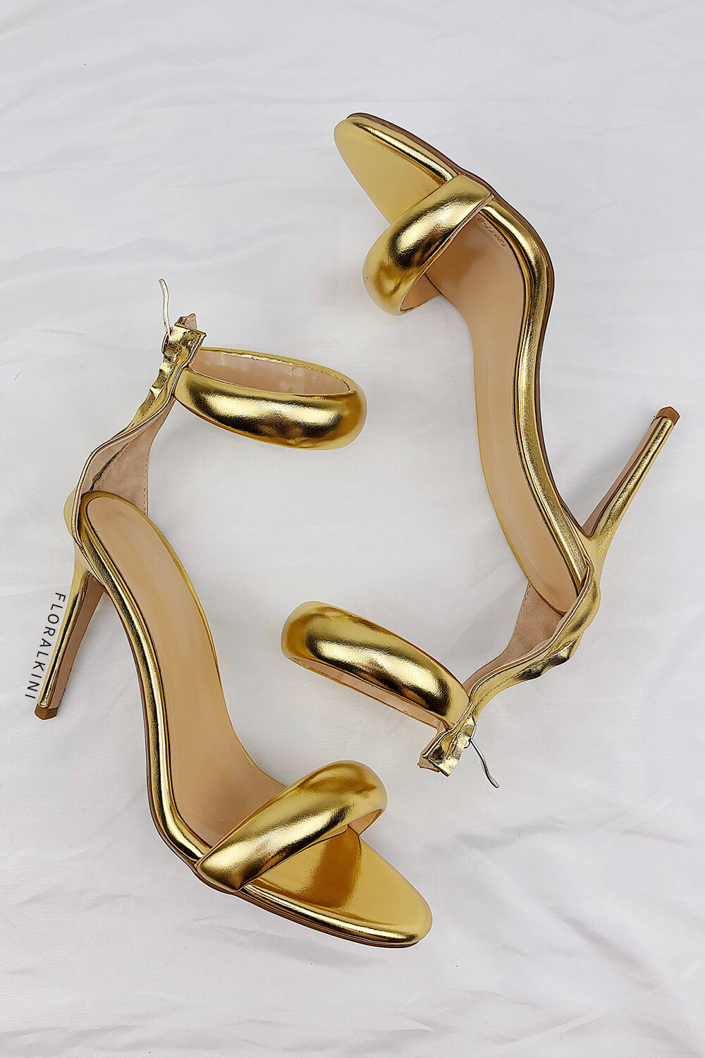 Faux Leather 'Bubble' Straps Pointed Toe Stiletto Heels - Gold