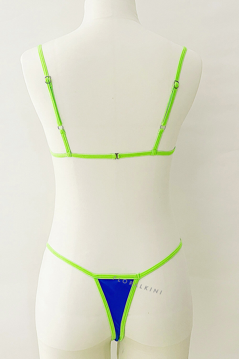 Contrast Trim Cami High-Leg Brazilian Bikini Set - Blue & Neon Green