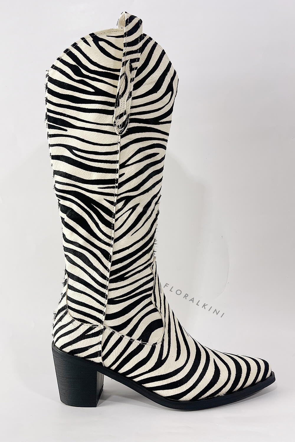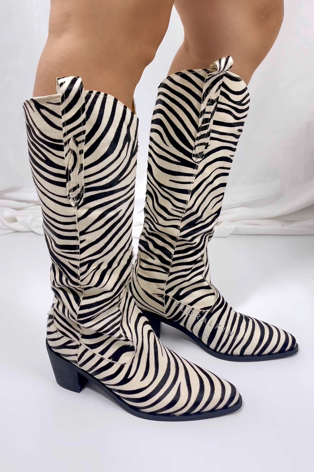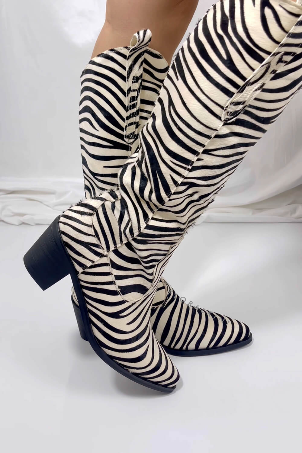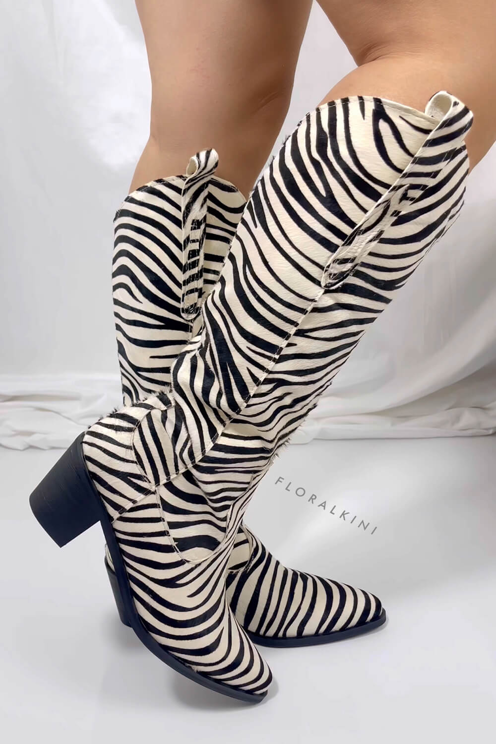 Calfskin Hair Zebra Print Mid-Calf Western Heeled Boots