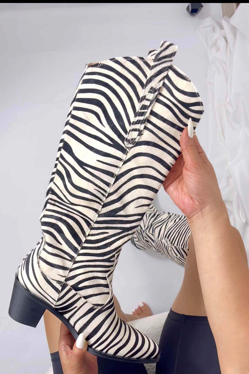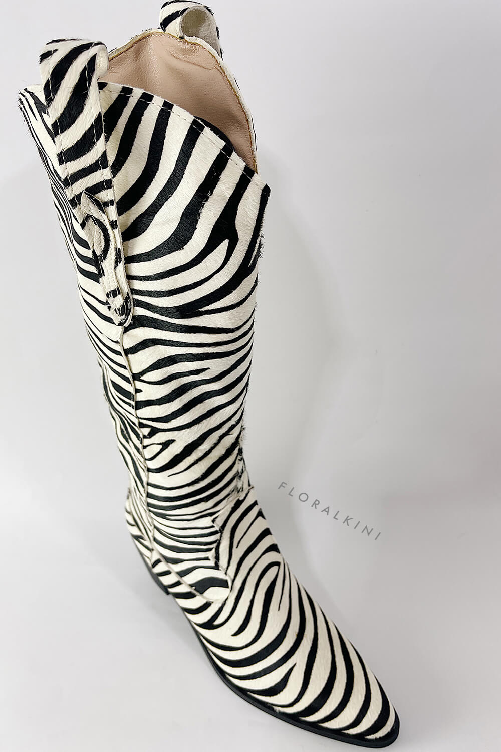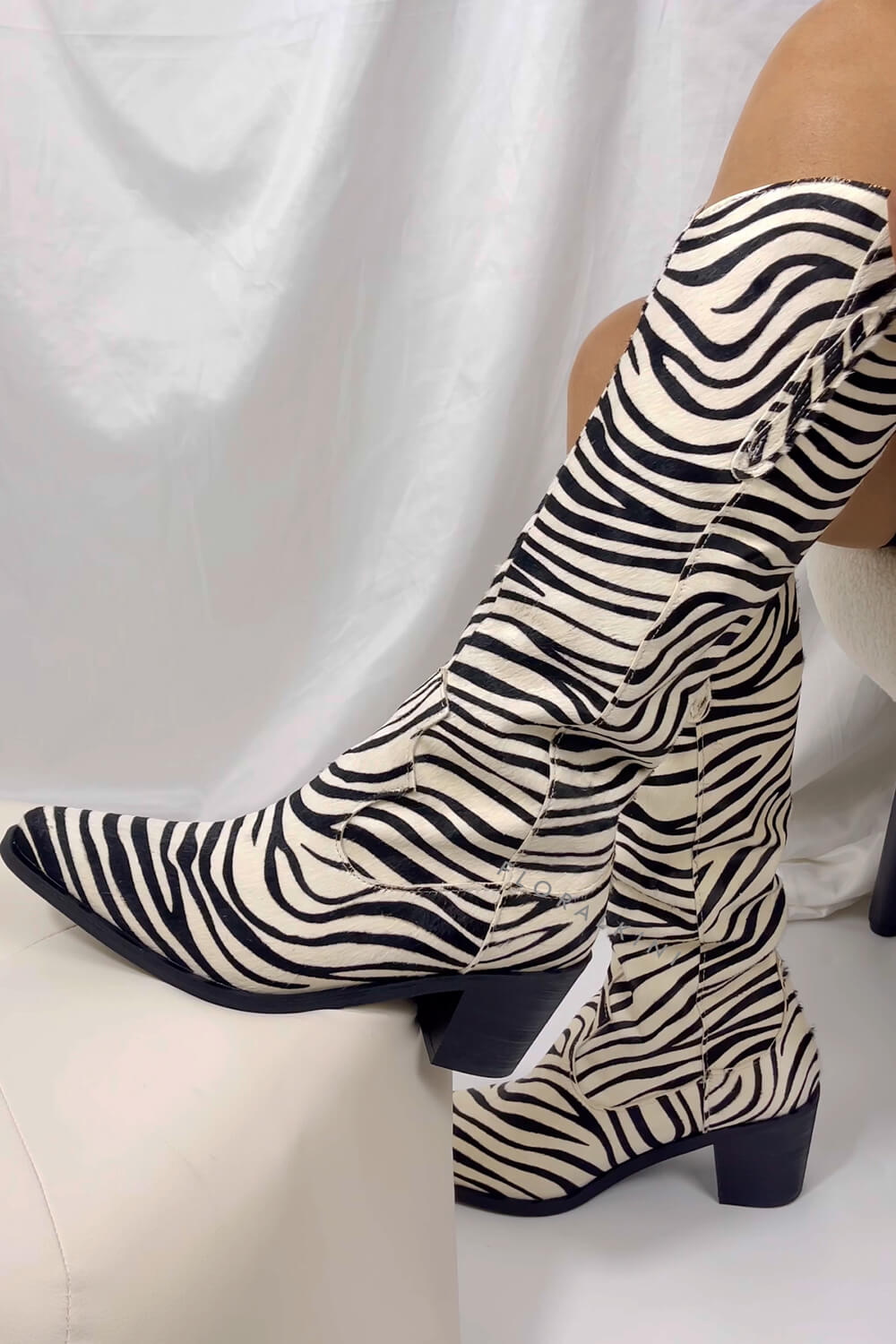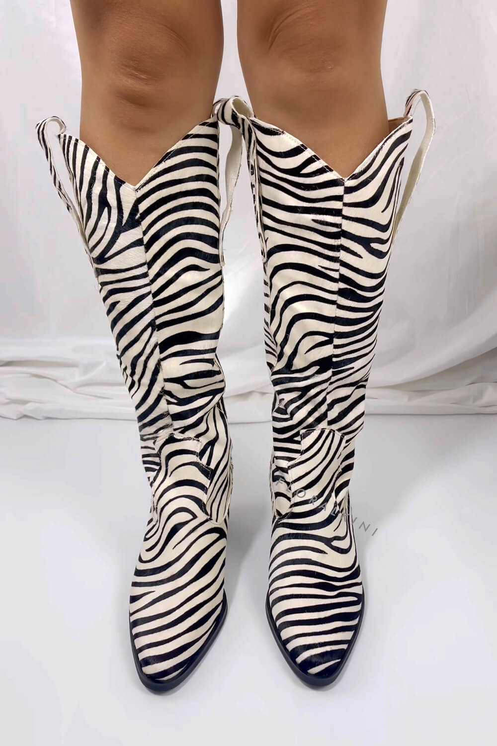Calfskin Hair Zebra Print Mid-Calf Western Heeled Boots
