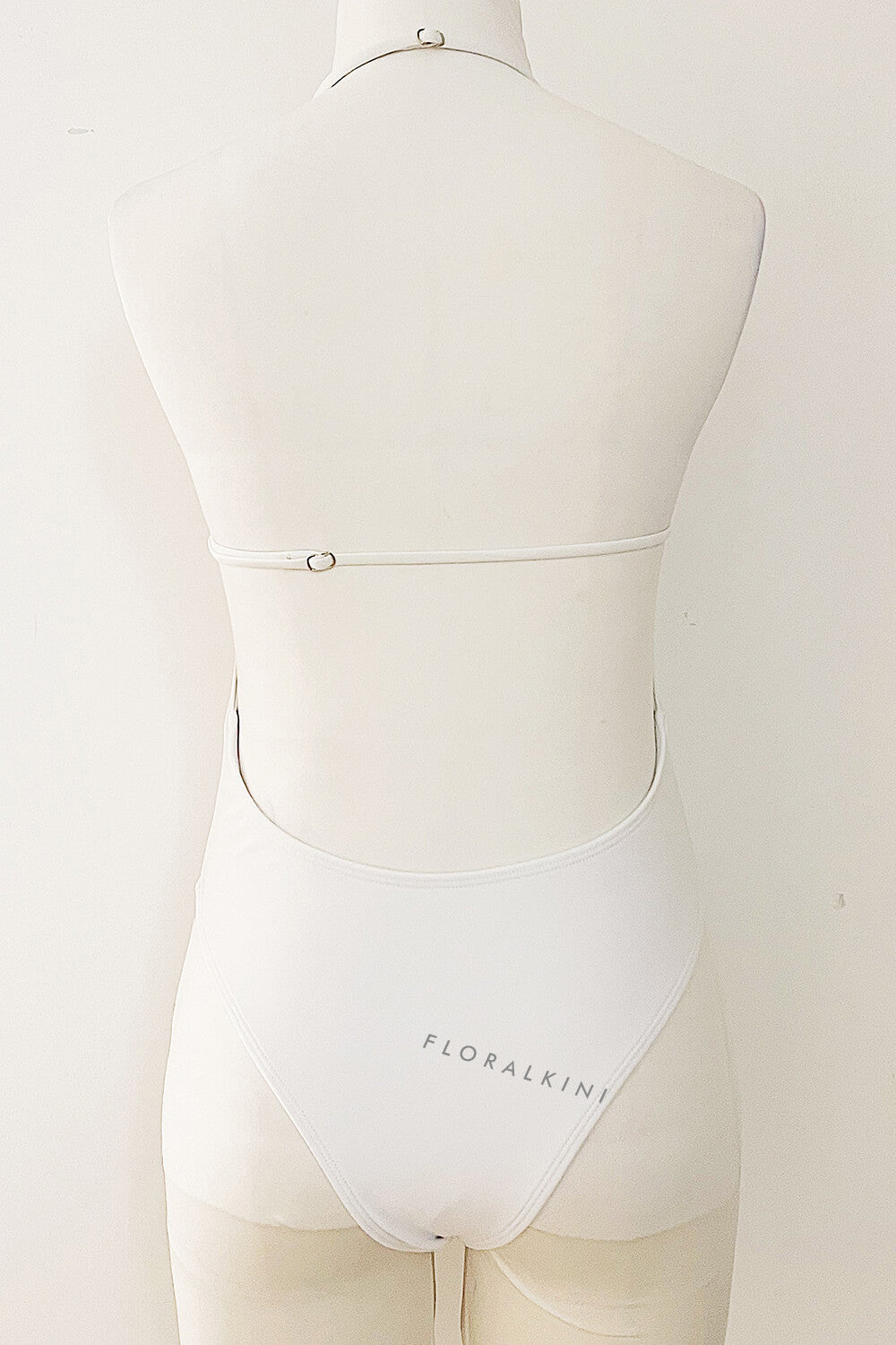 Plunge Halterneck One Piece Swimsuit With Metal Shell Decor - White