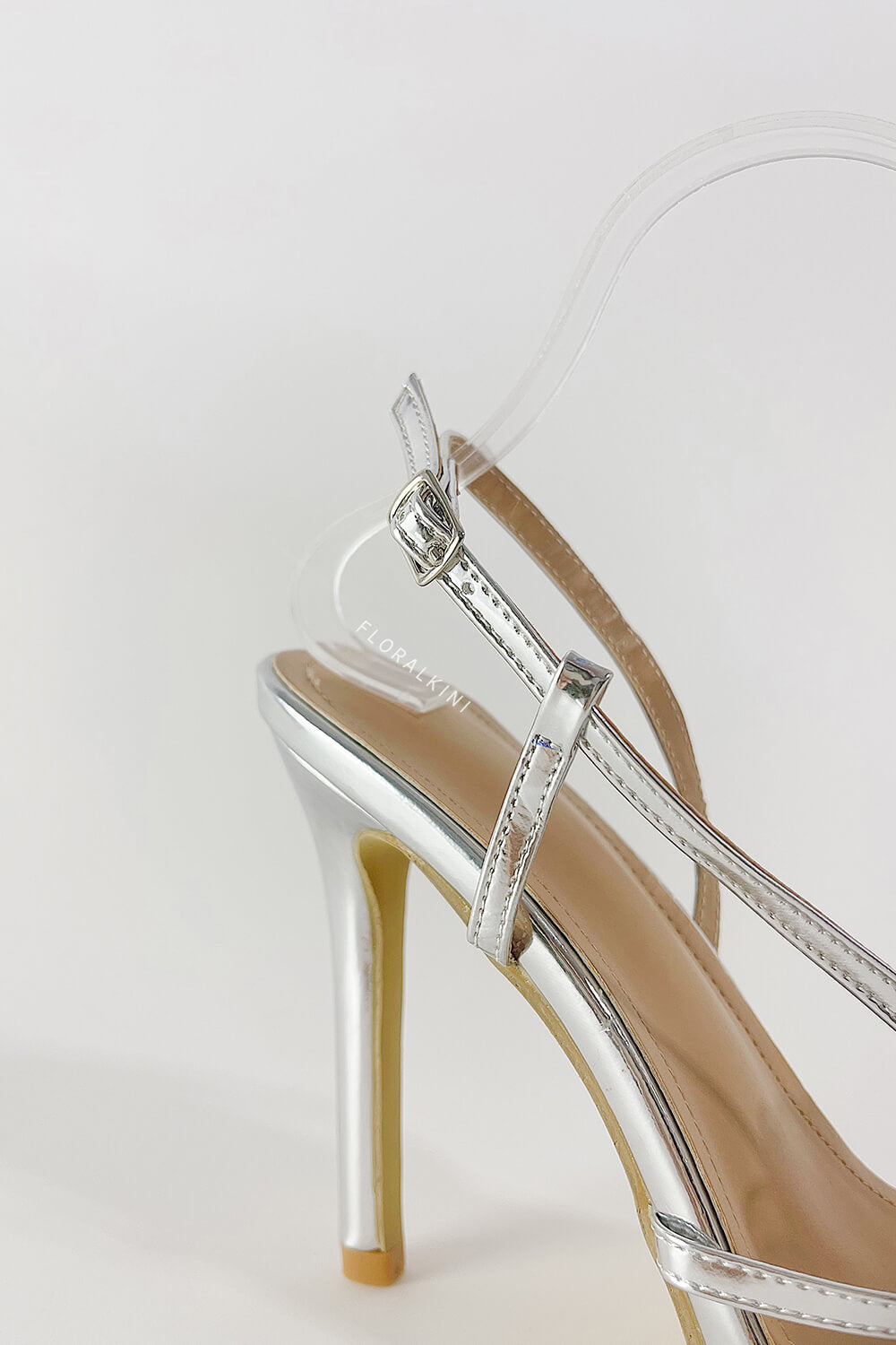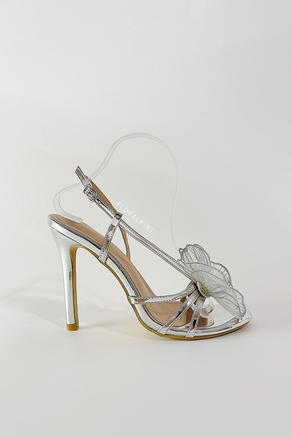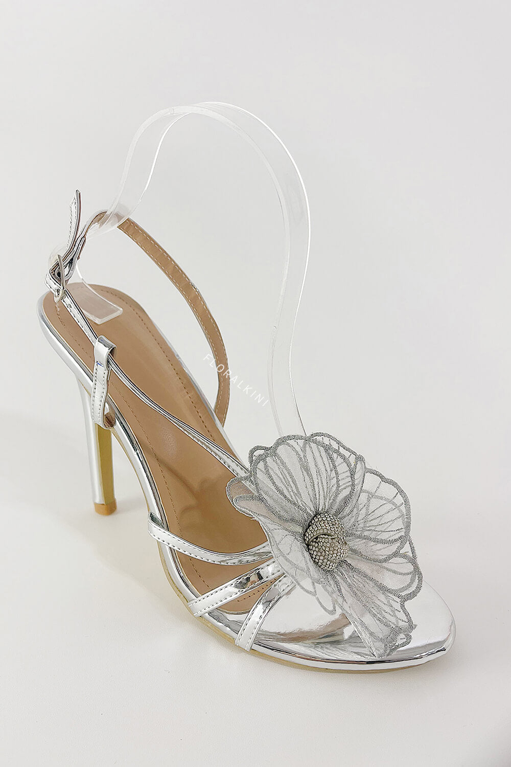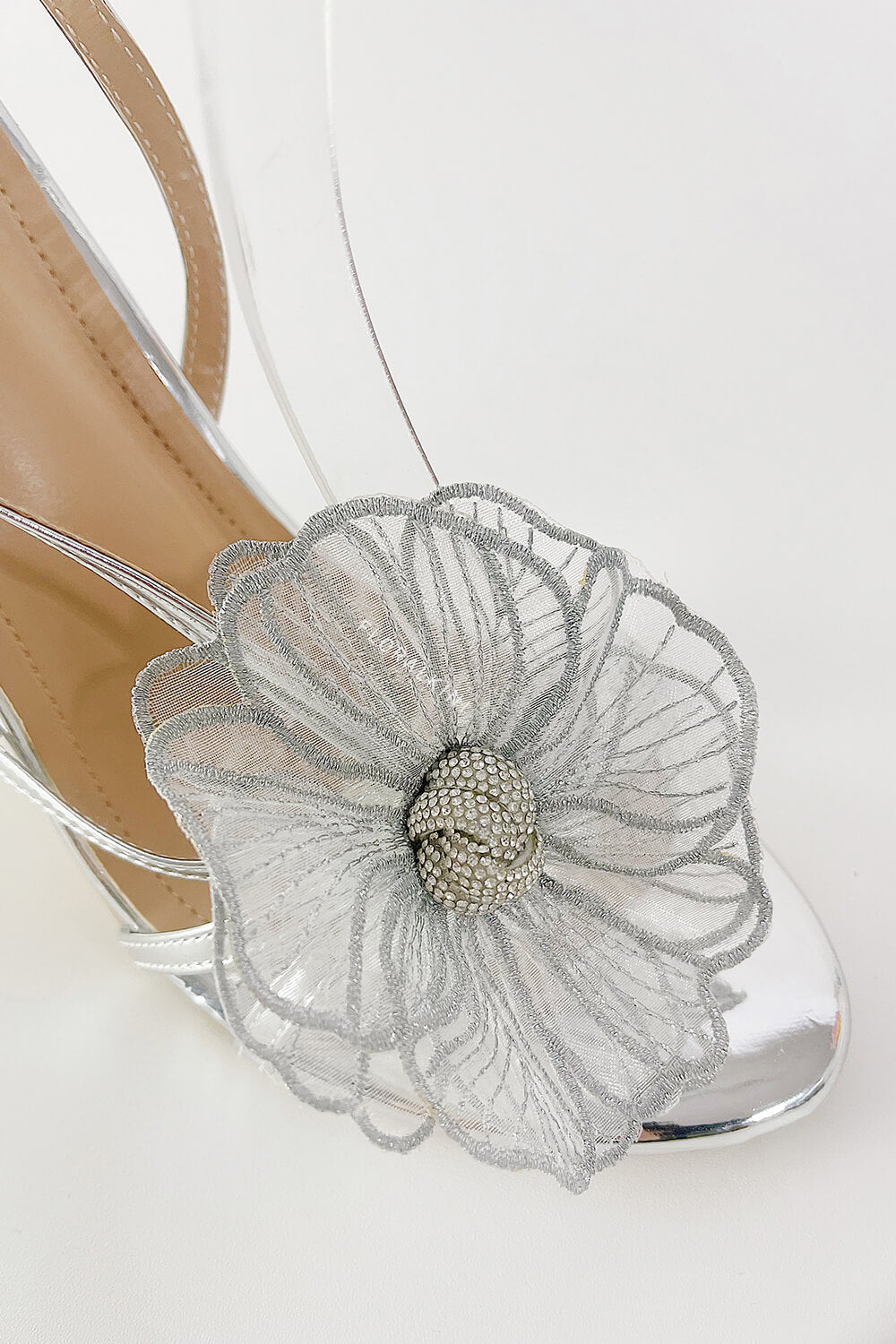 Flower Metallic Silver Rhinestone Slingback Stiletto Heels