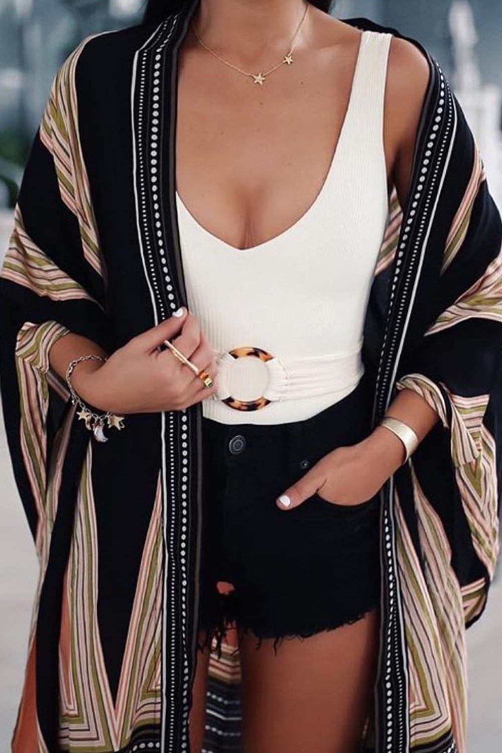 White Ribbed O-Ring Belted One Piece Swimsuit