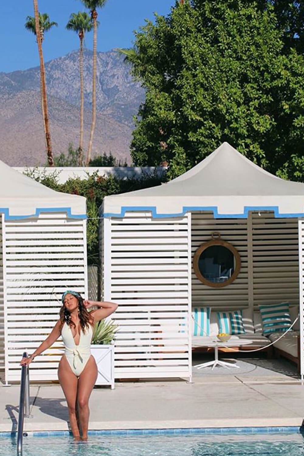 White Ribbed Plunge Halter Tie-Up One Piece Swimsuit