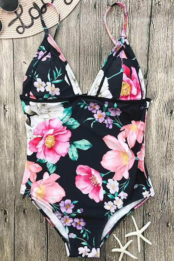 Floralkini Floral Print Bralette One Piece Swimsuit