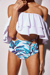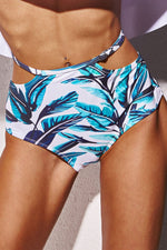 Leaves Print Cut-Out High Waist Bikini Bottoms