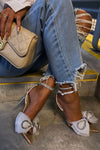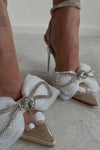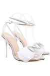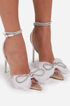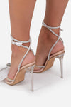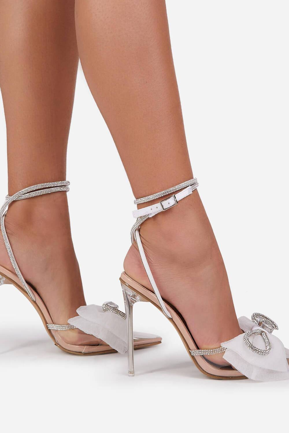 Nude Patent Bow Detail Diamante Wrap Around Clear Perspex Stiletto Heel