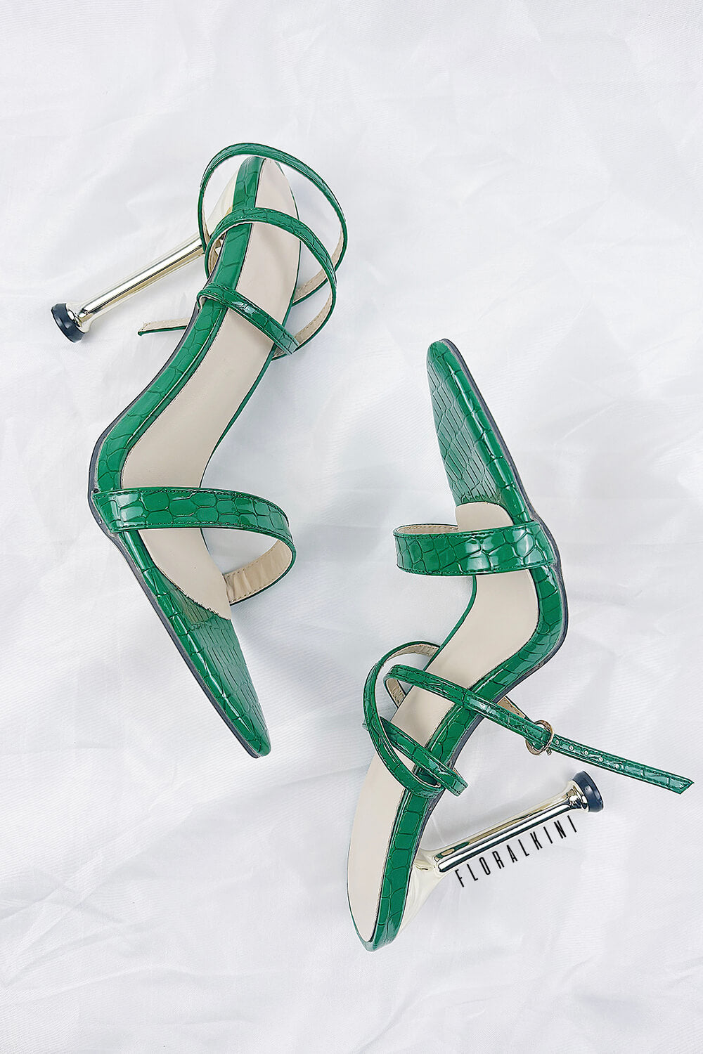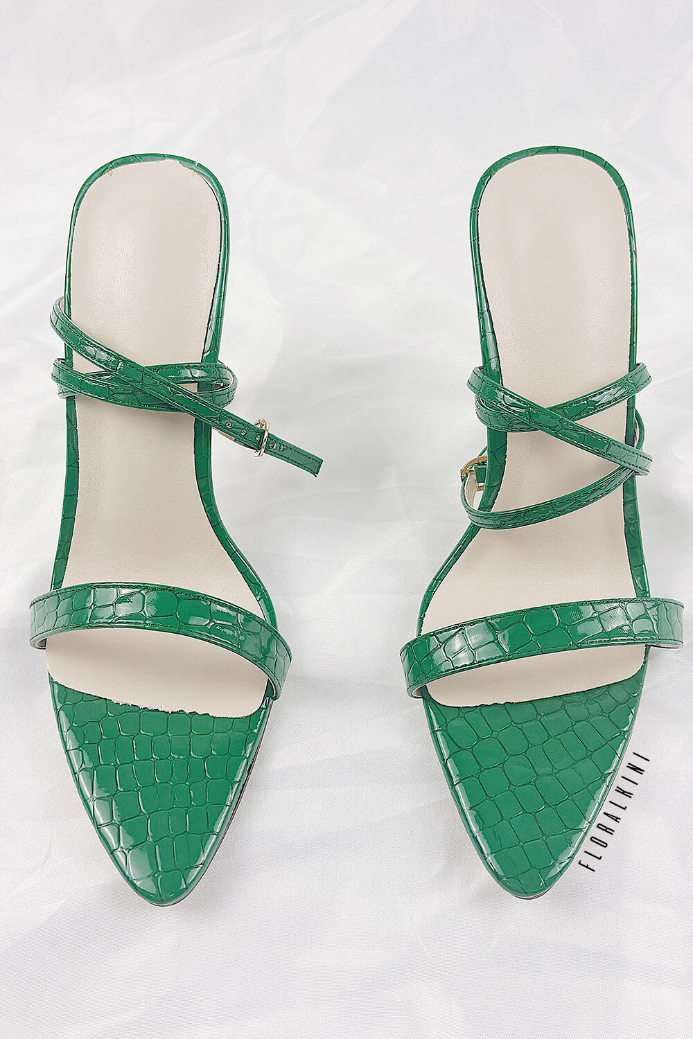 Green Faux Croc Stiletto Heels