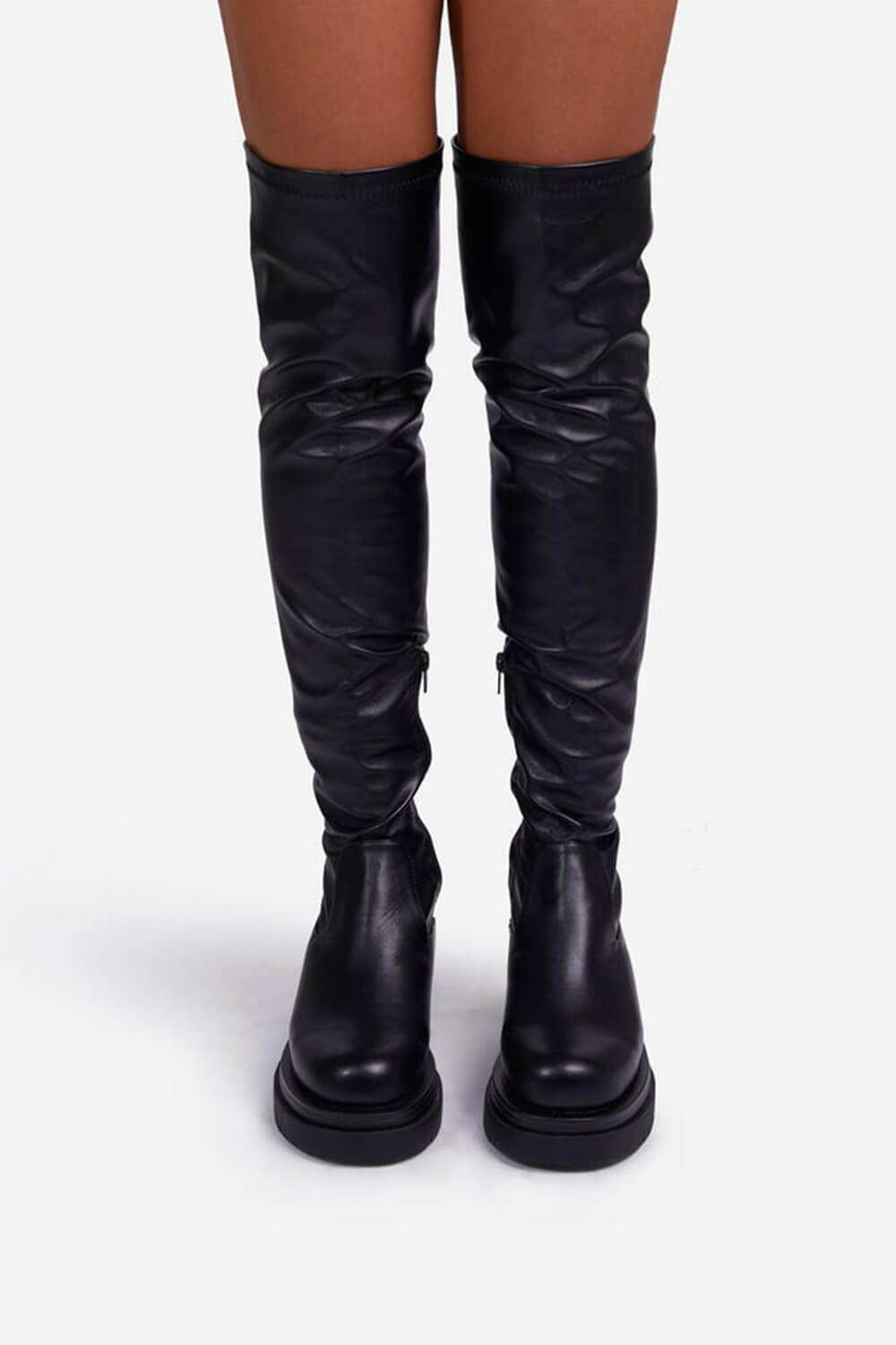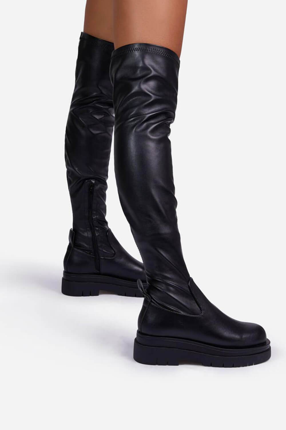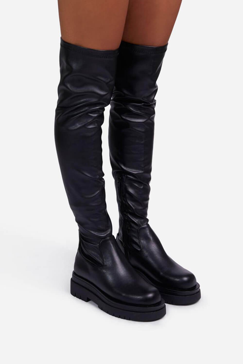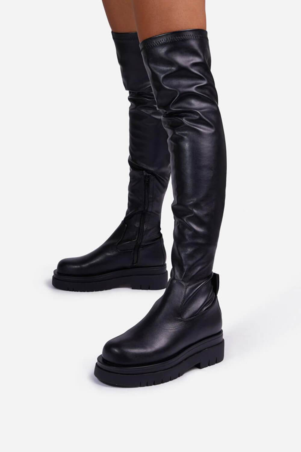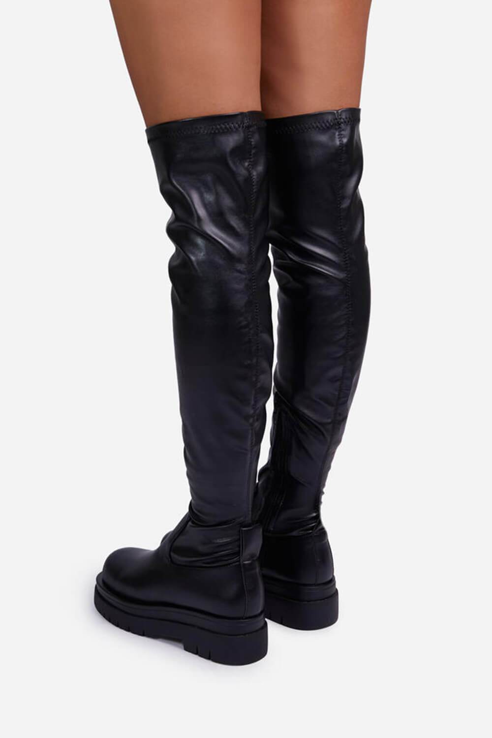 Black Faux Leather Over The Knee Thigh High Long Biker Boot