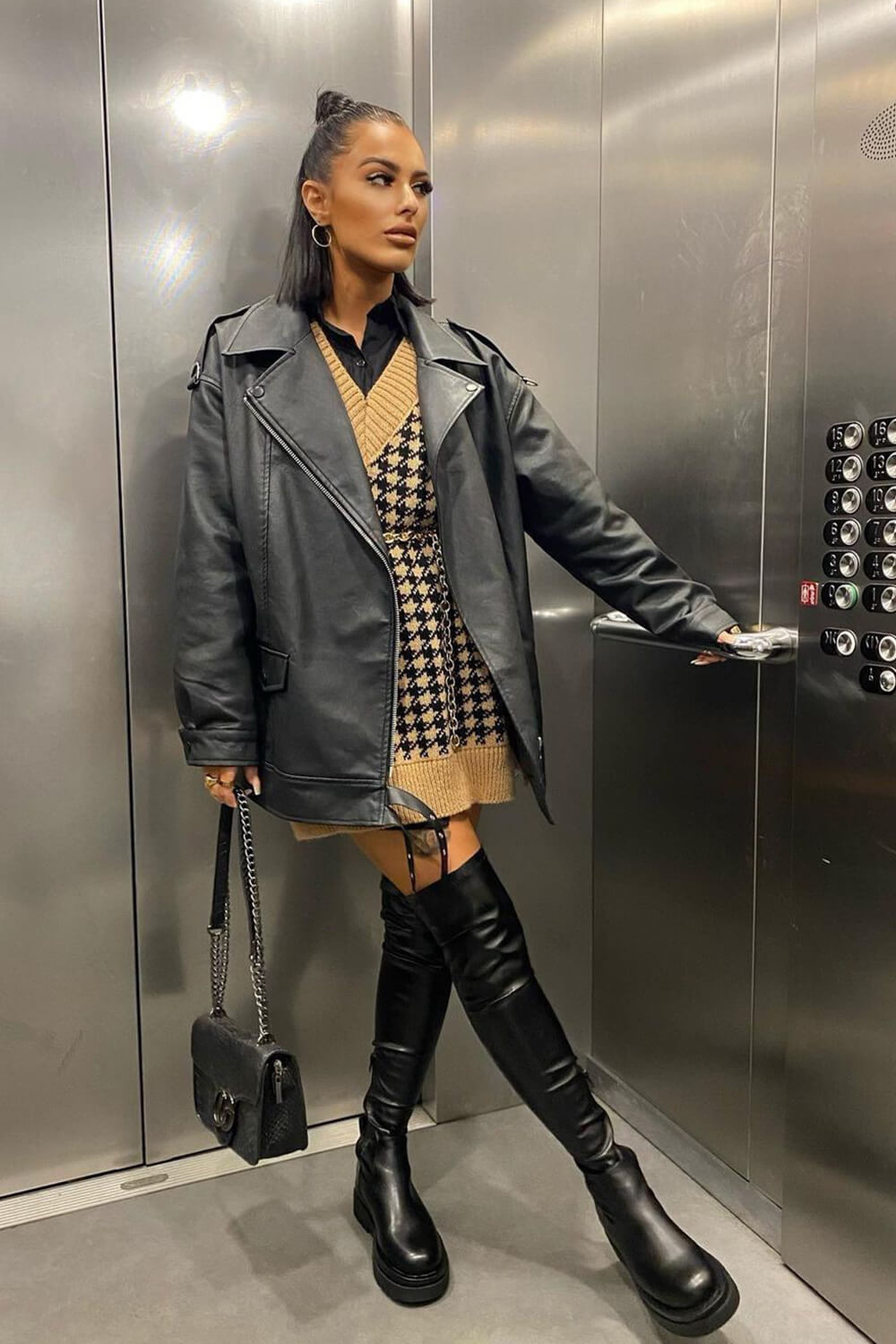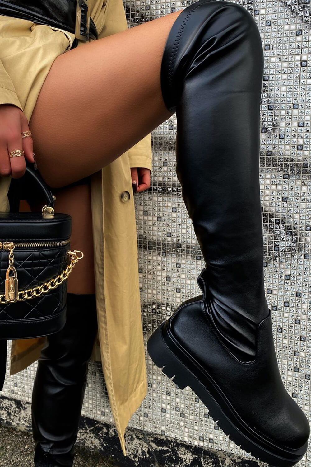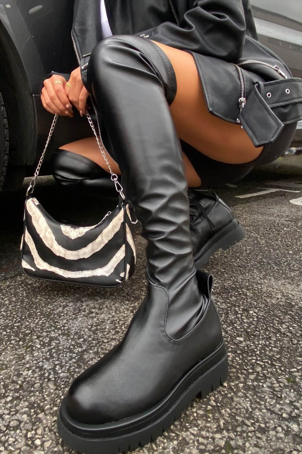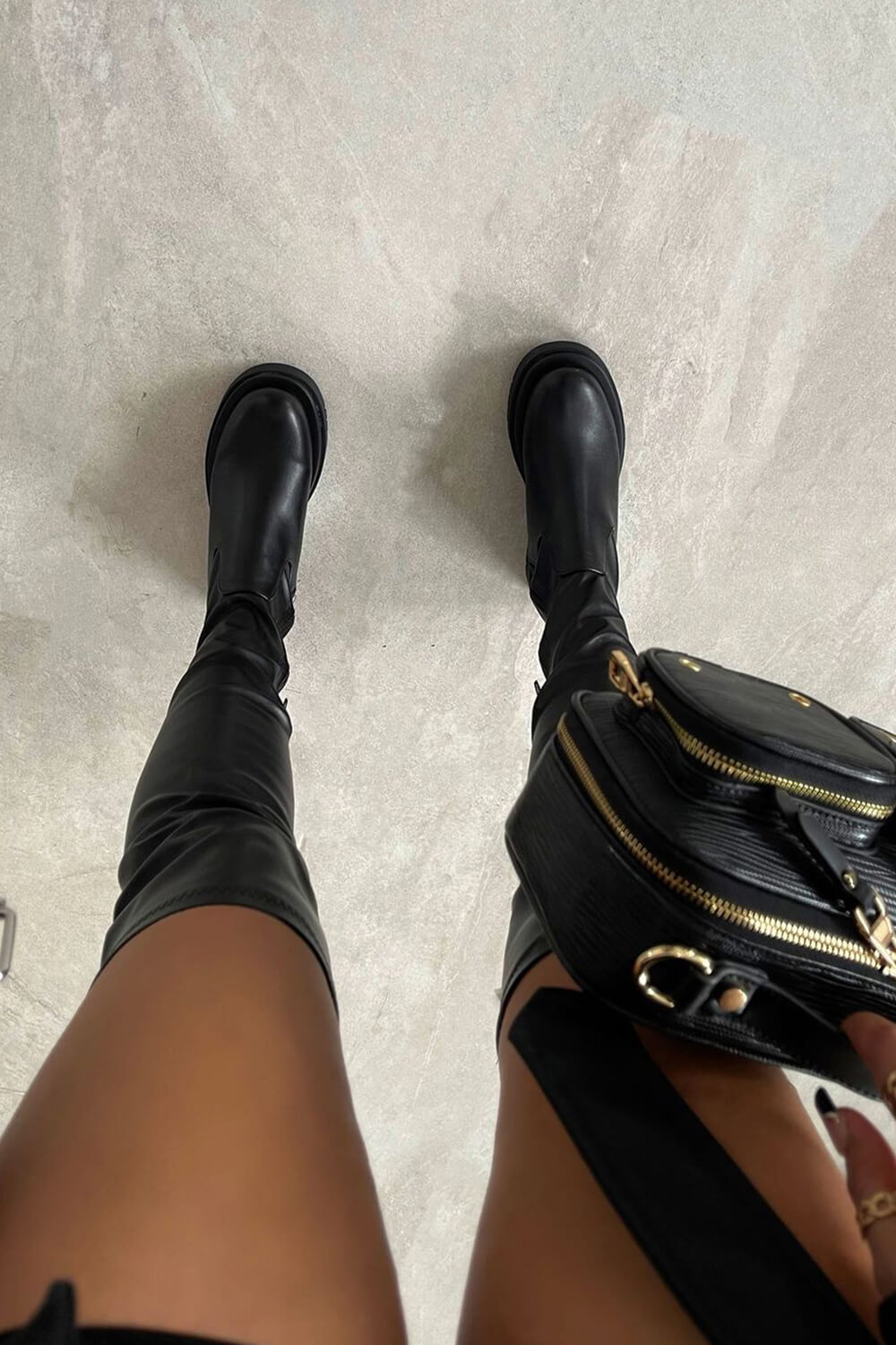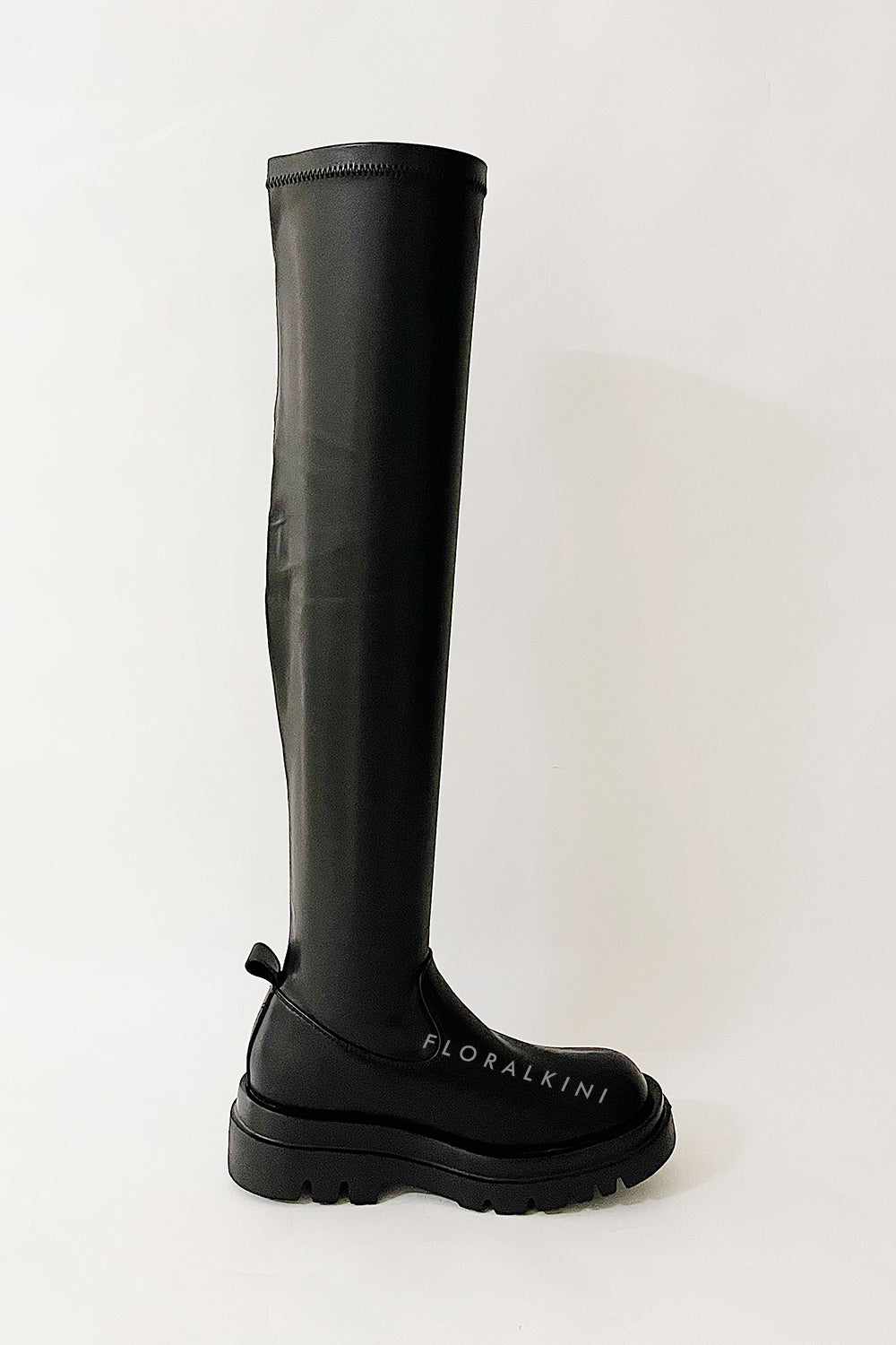 Black Faux Leather Over The Knee Thigh High Long Biker Boot