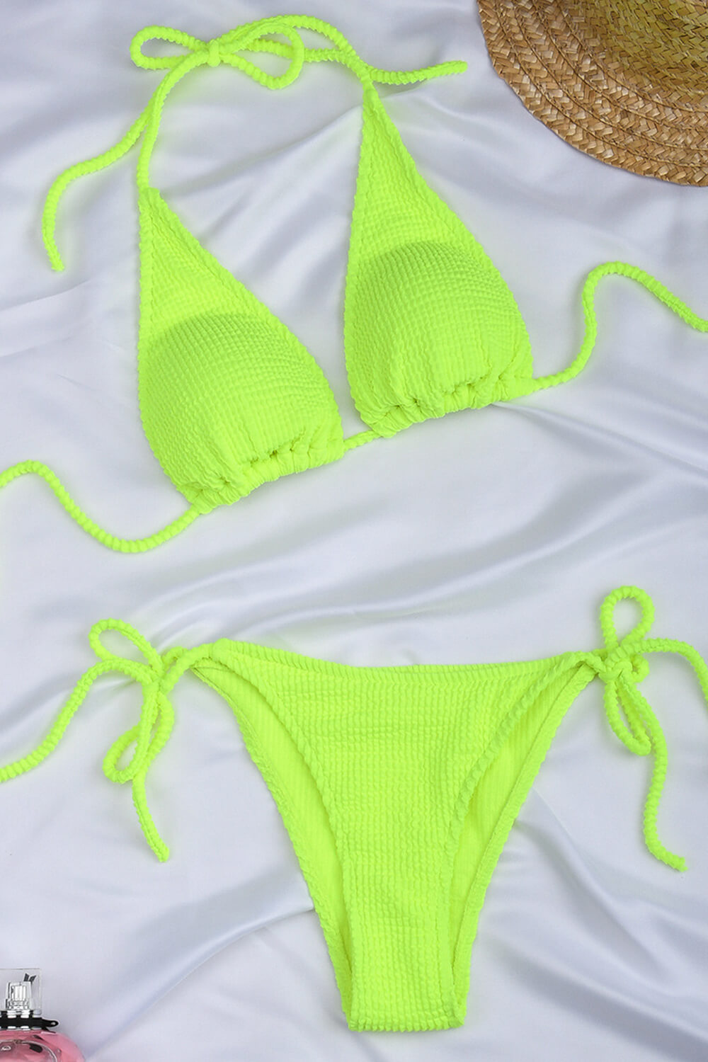 Neon Yellow Crinkle Halter Bikini Top
