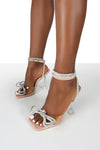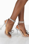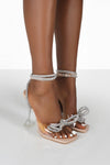 Nude Patent Diamante Bow Detail Square Toe Clear Perspex Heel