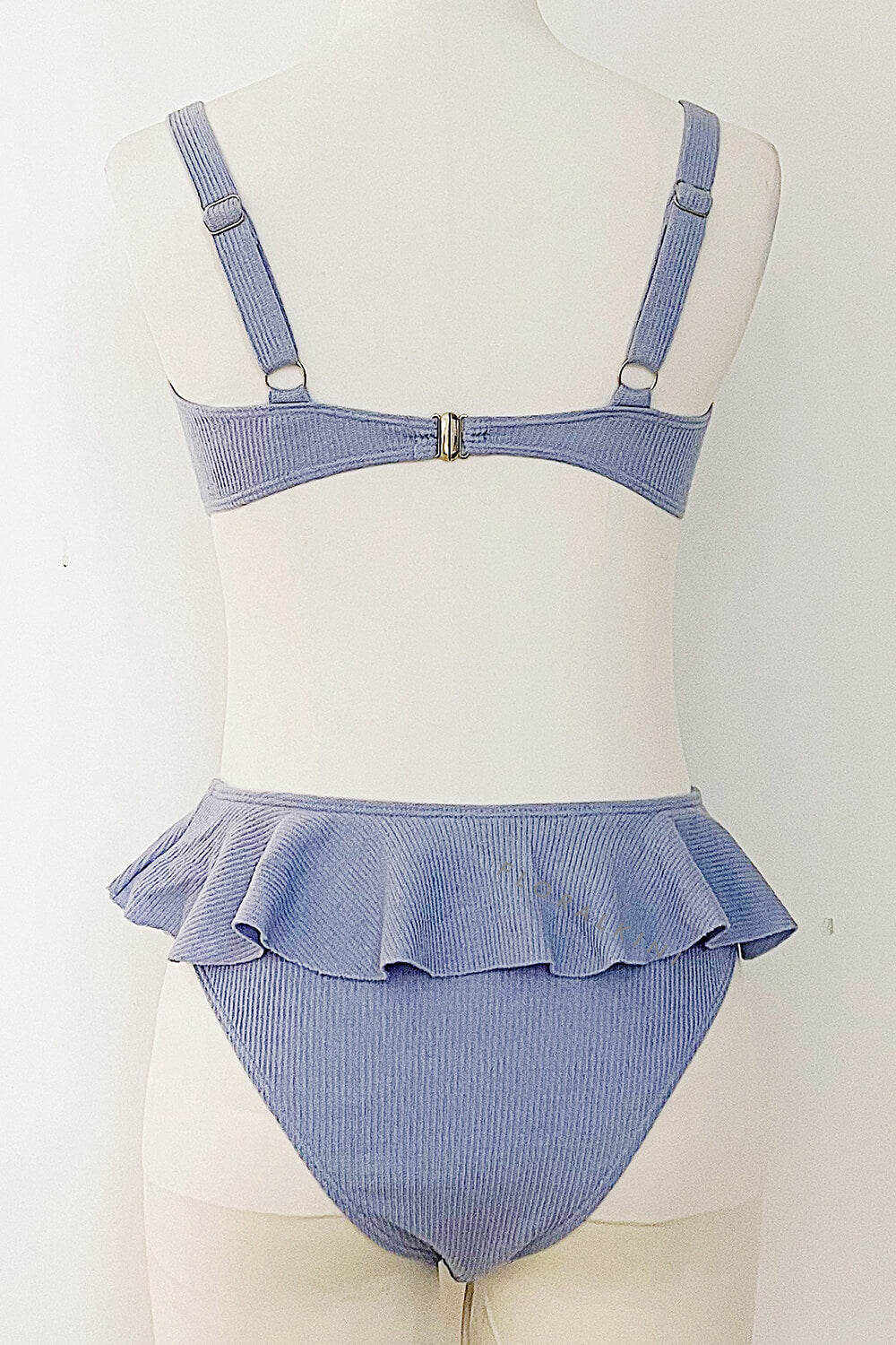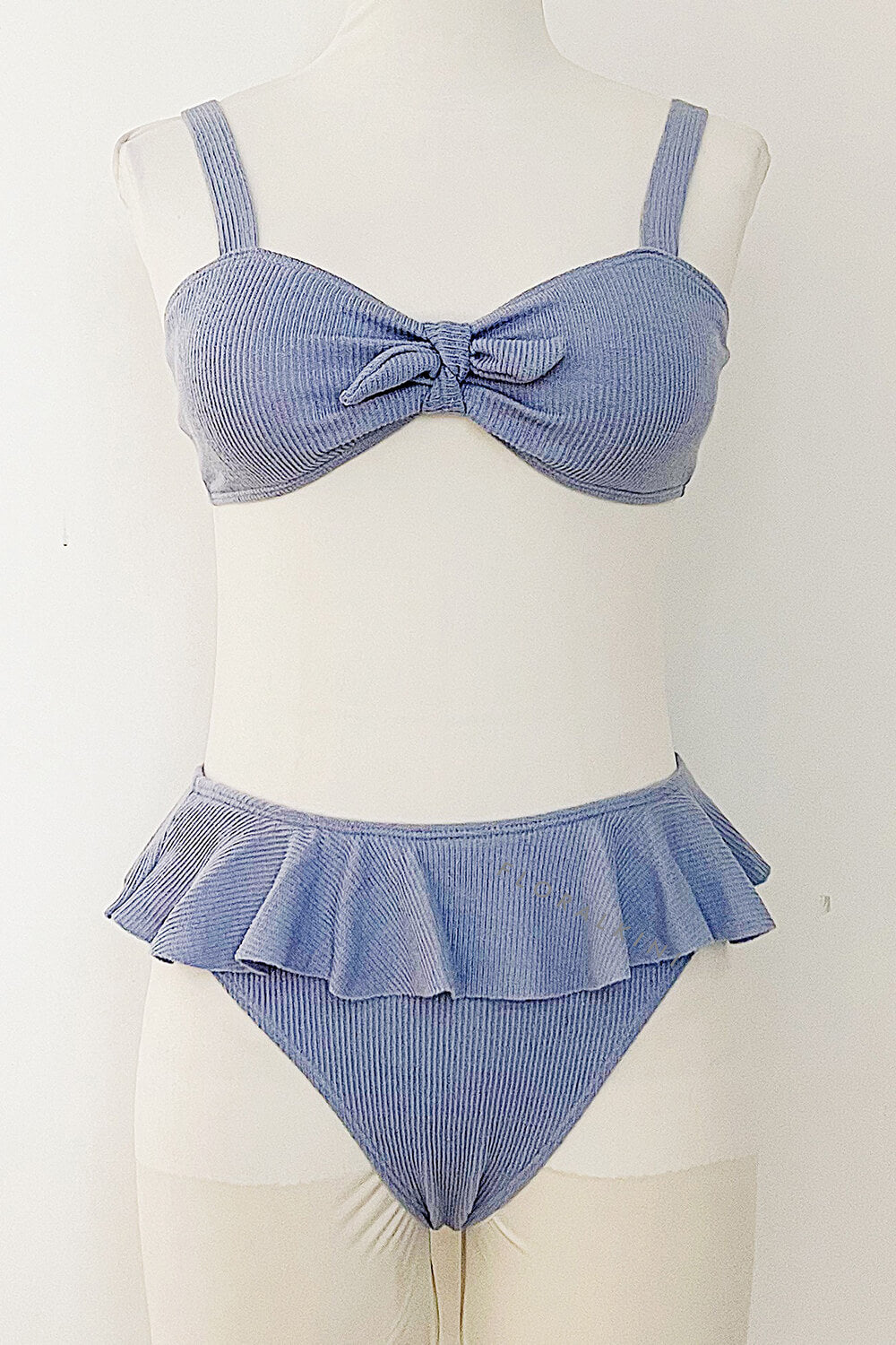 Light Blue Ribbed Front Tie Knot Bralette Bikini Top