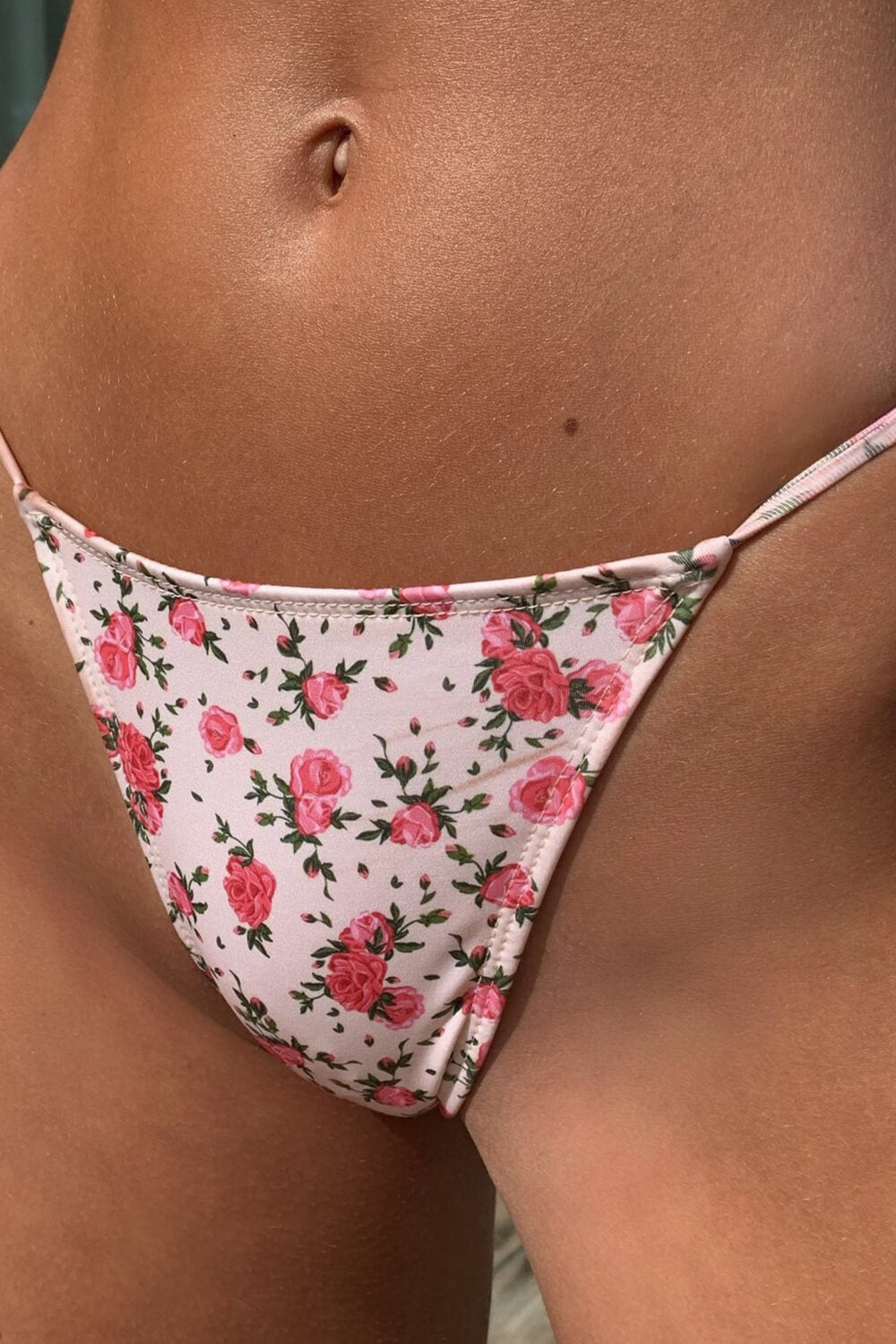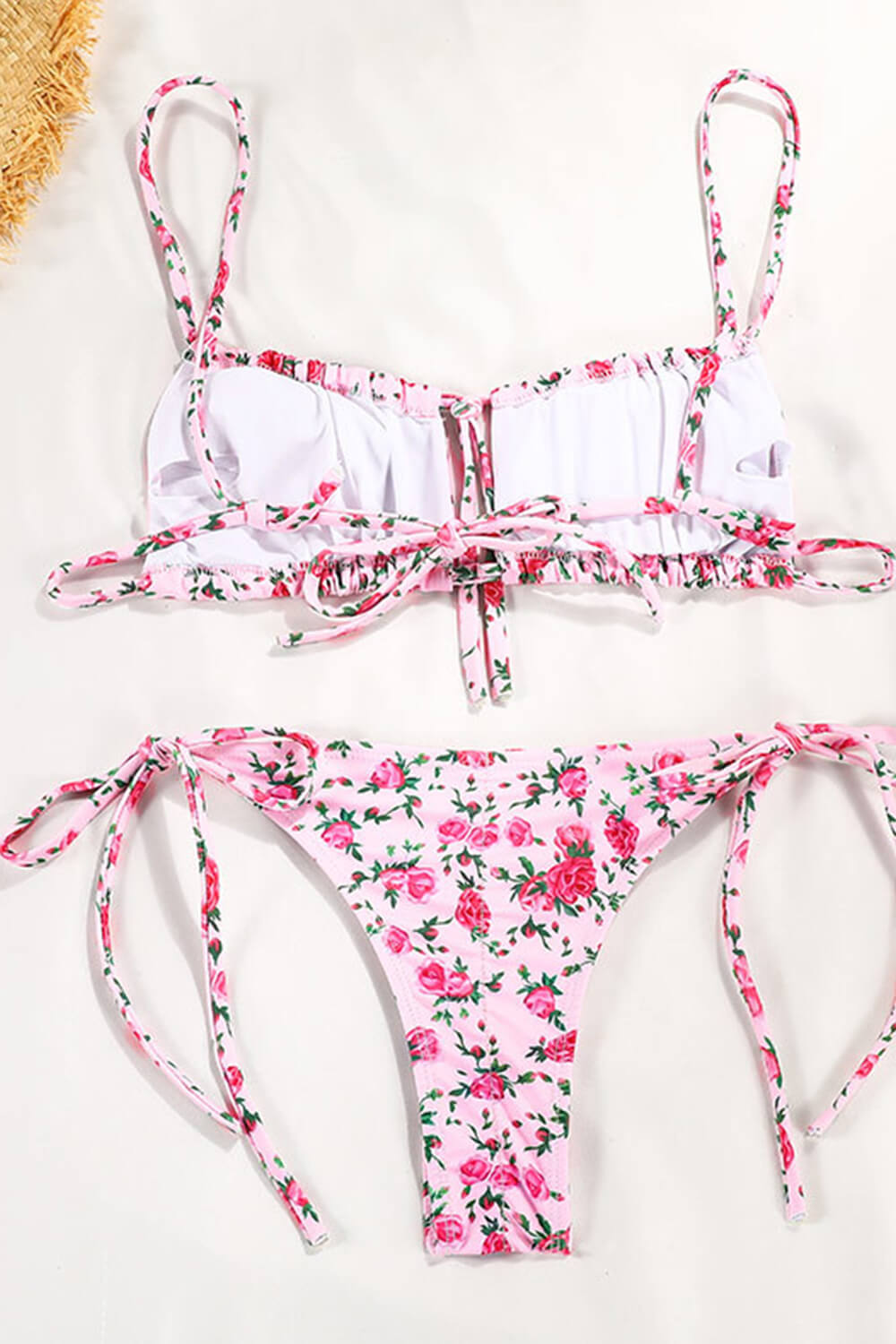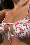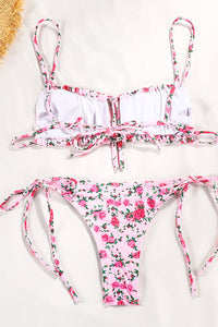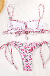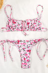 Floral Ruched Bandeau Adjustable Tie Front Tie Side Bikini Set