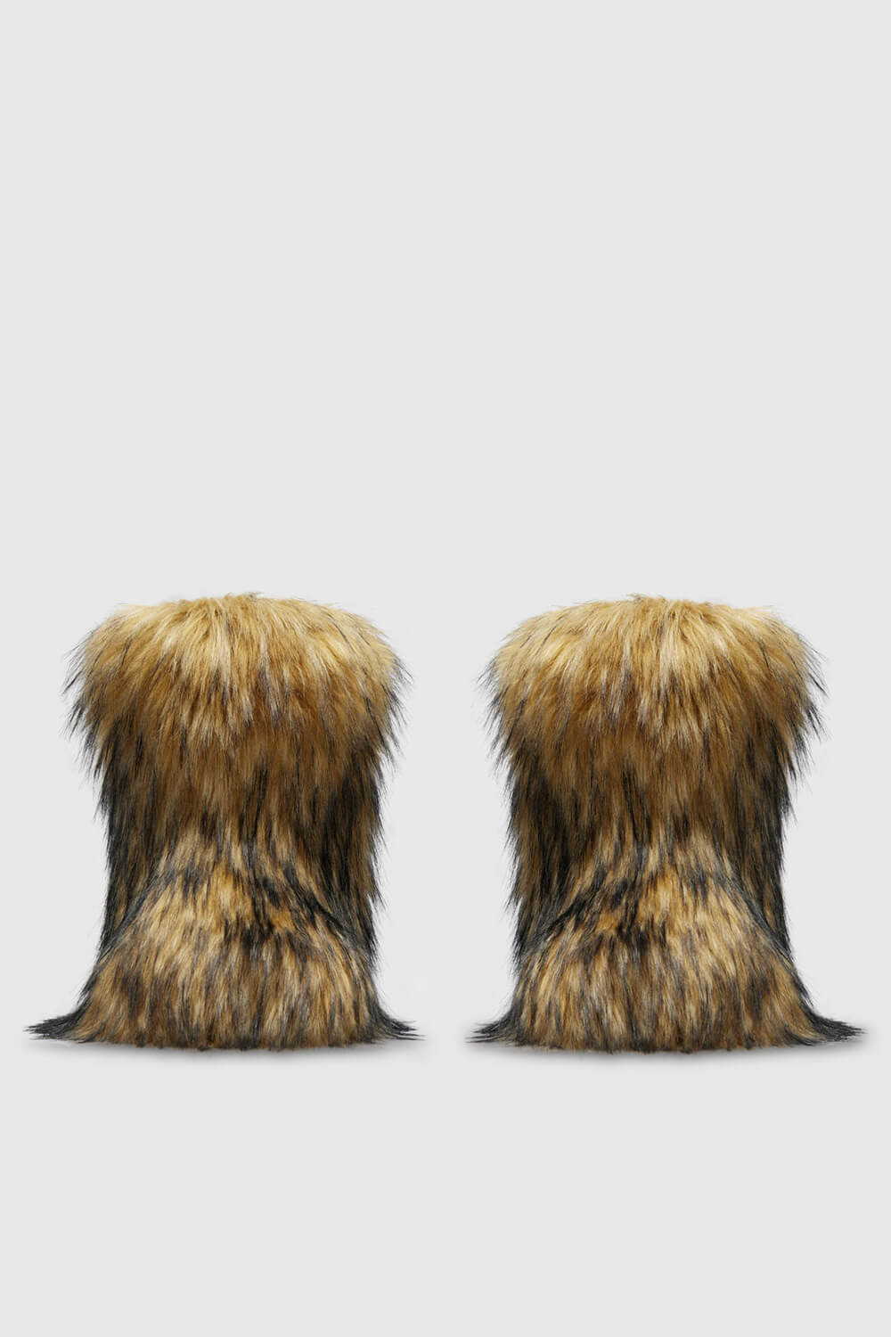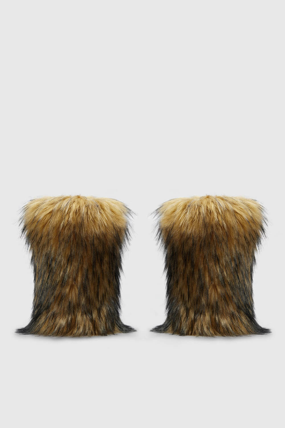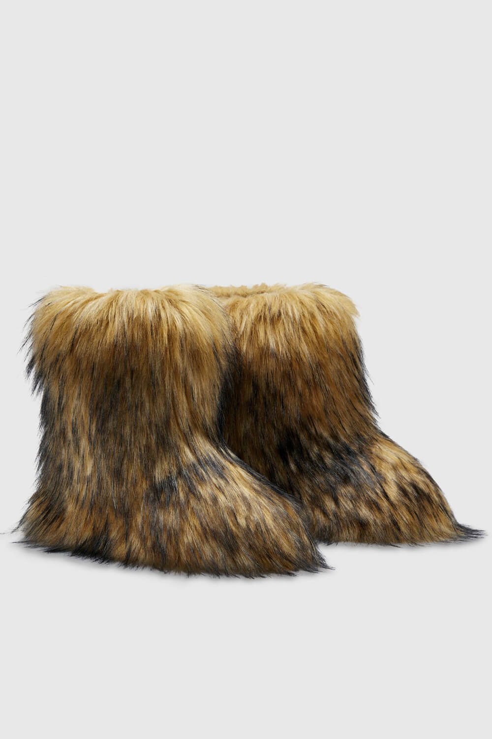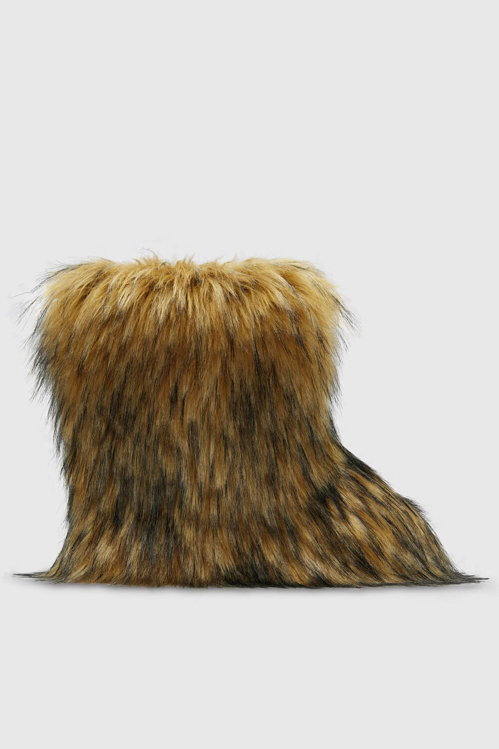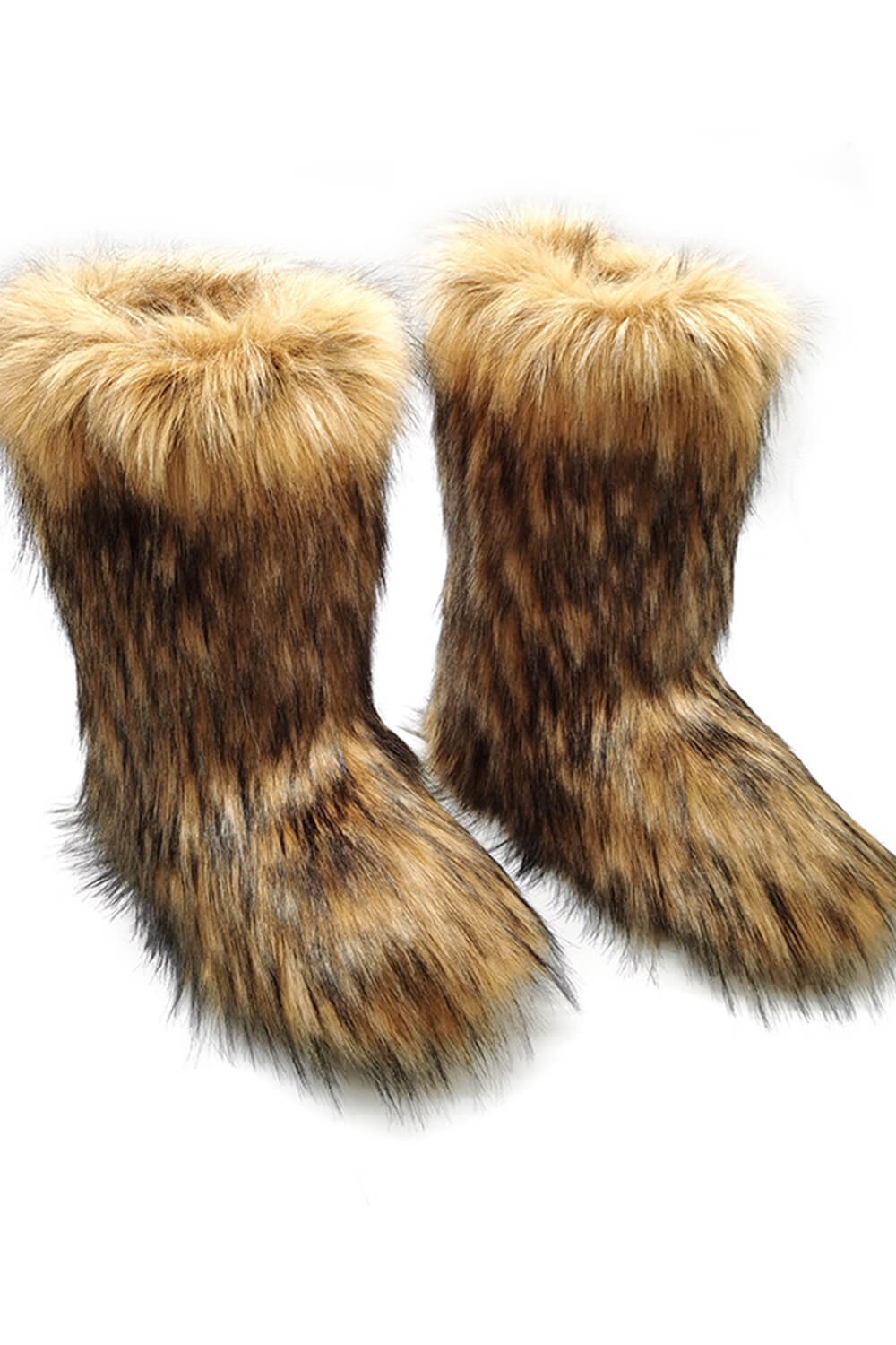 Black Furry Faux Fur Mid Calf Bootie - Brown