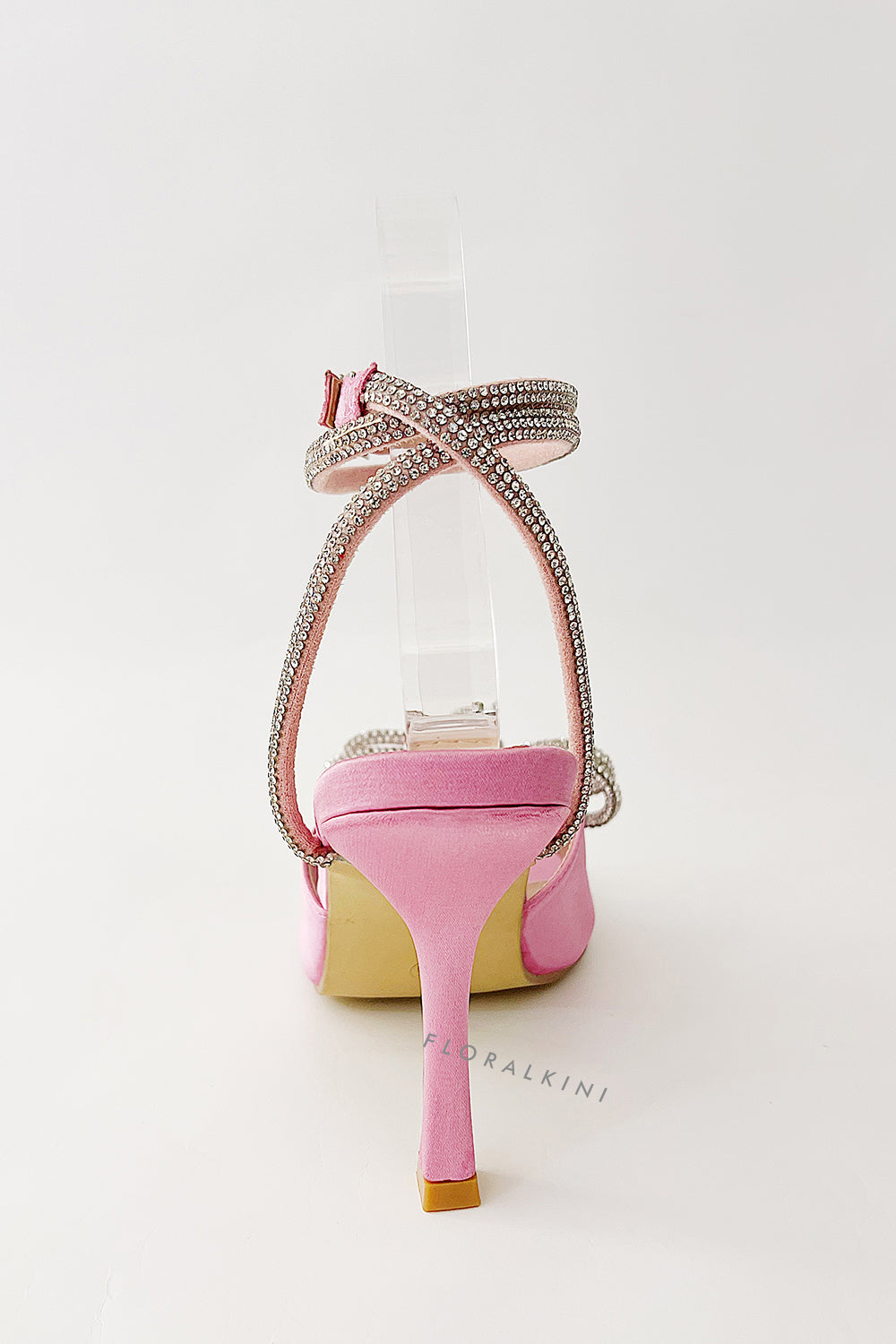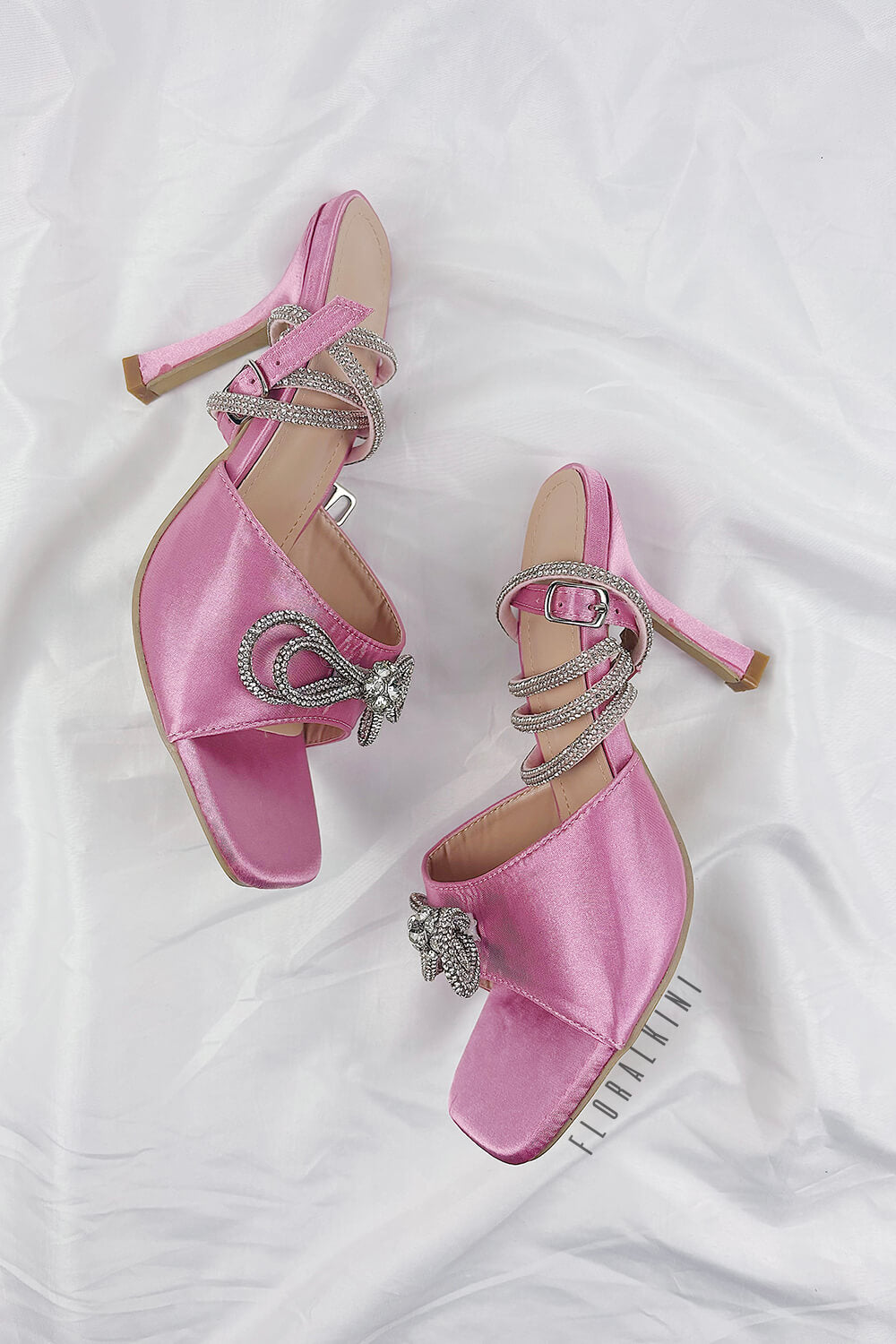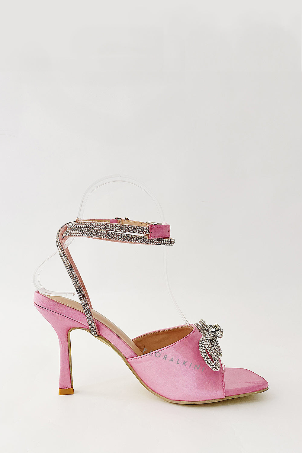 Diamante Bow Embellished Open Square Toe Heels - Pink