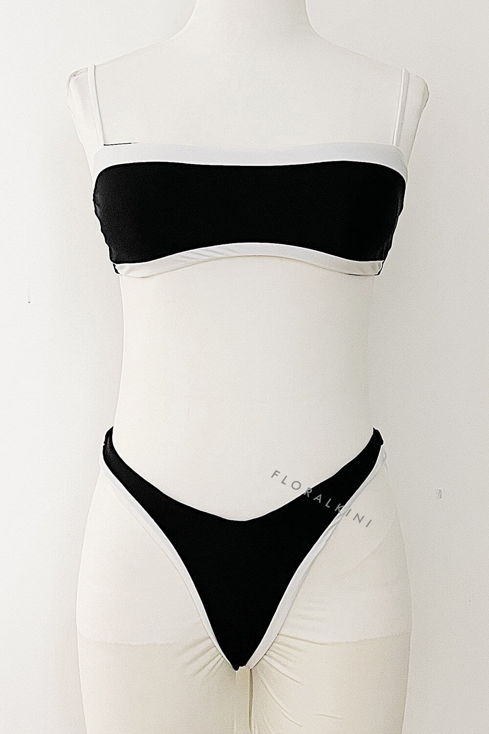 Contrast Trim Cami High-Leg Bikini Set - Black & White