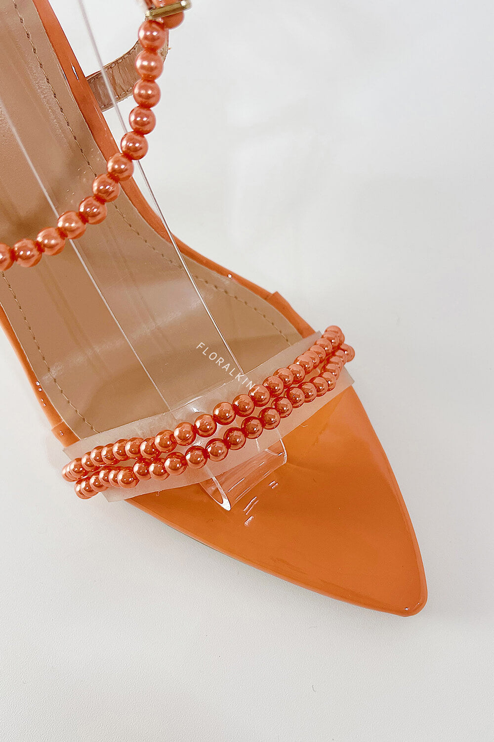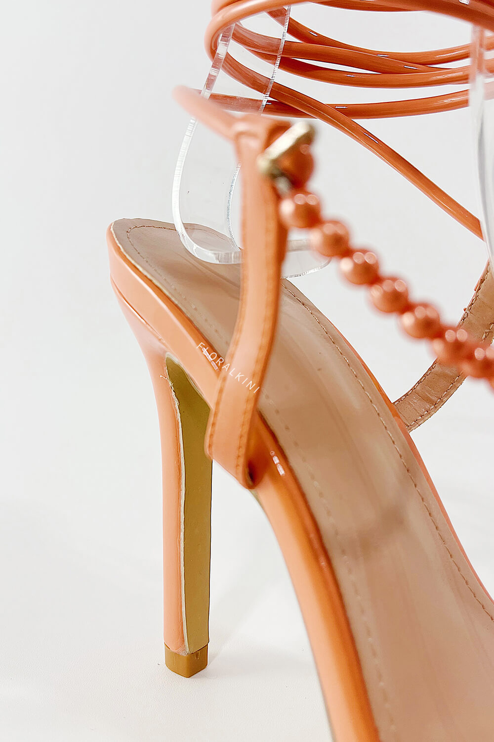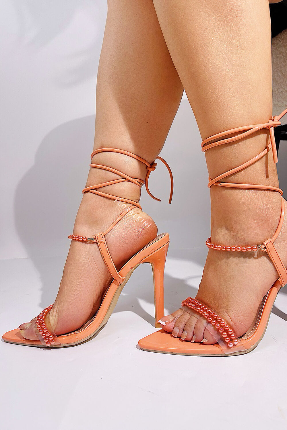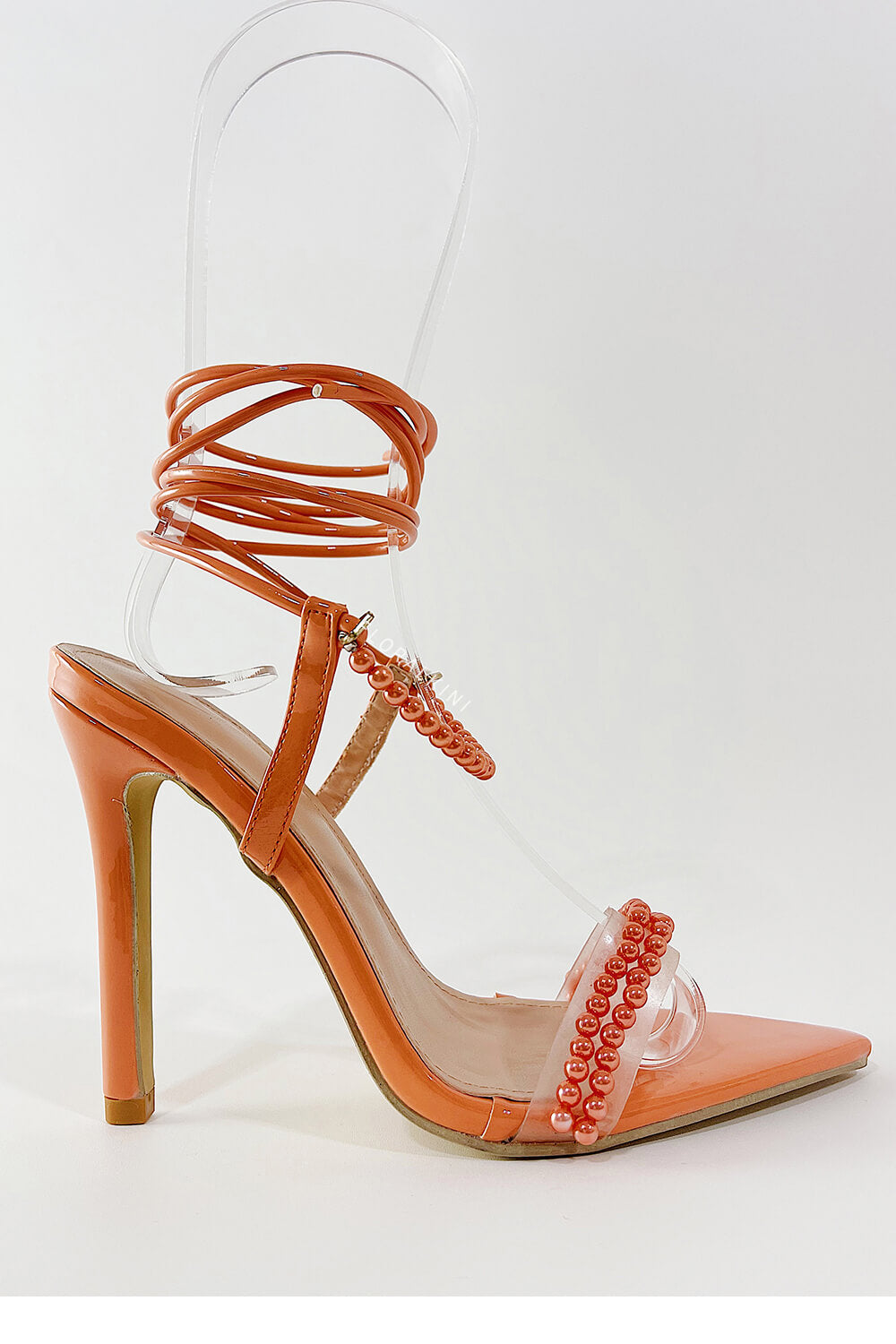 Pearl Strap Lace Up Pointed Toe High Stiletto Heels - Coral