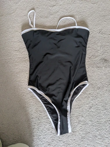 Colorblock Contrast Trim High Rise One Piece Swimsuit - Black