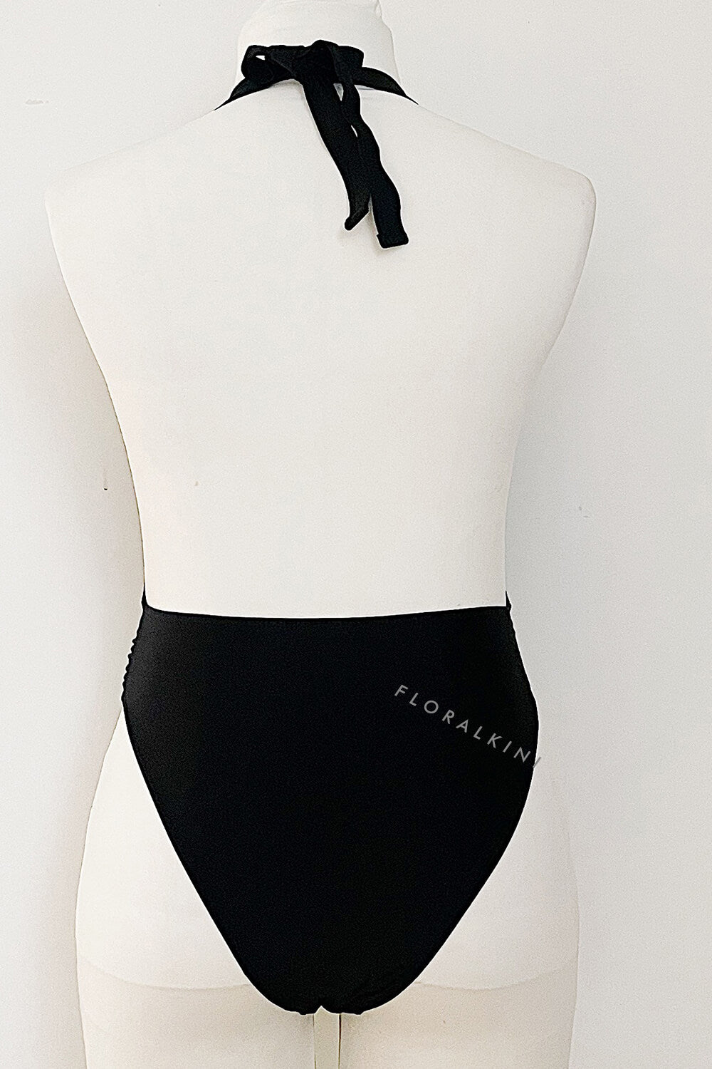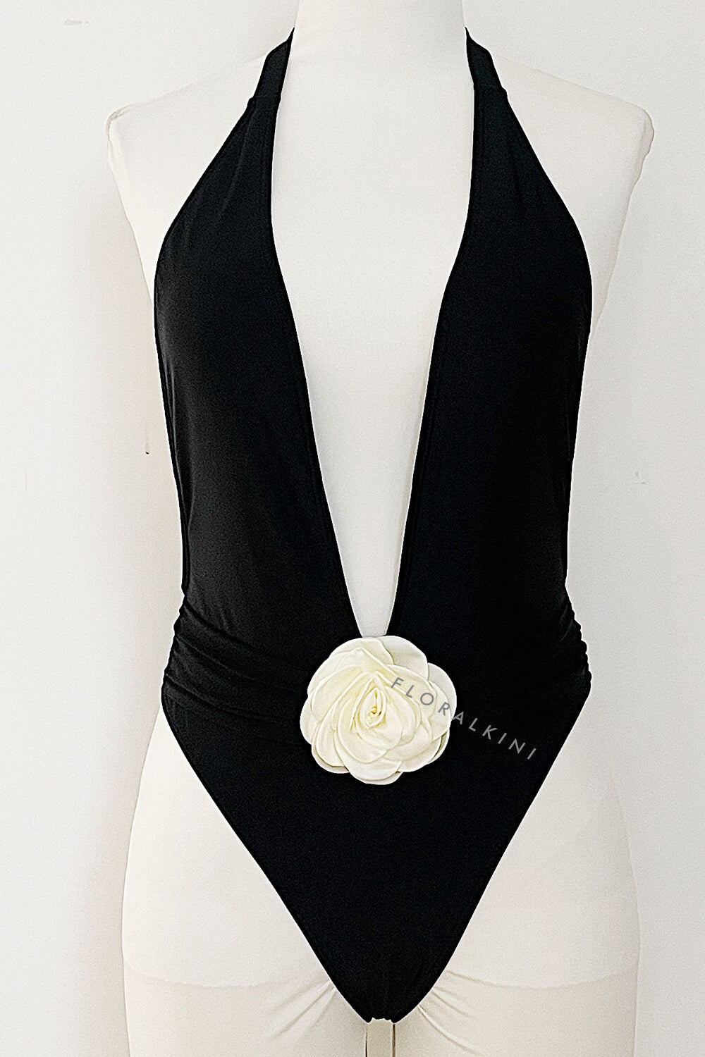Rosette Deep V Halter One Piece Swimsuit - Black