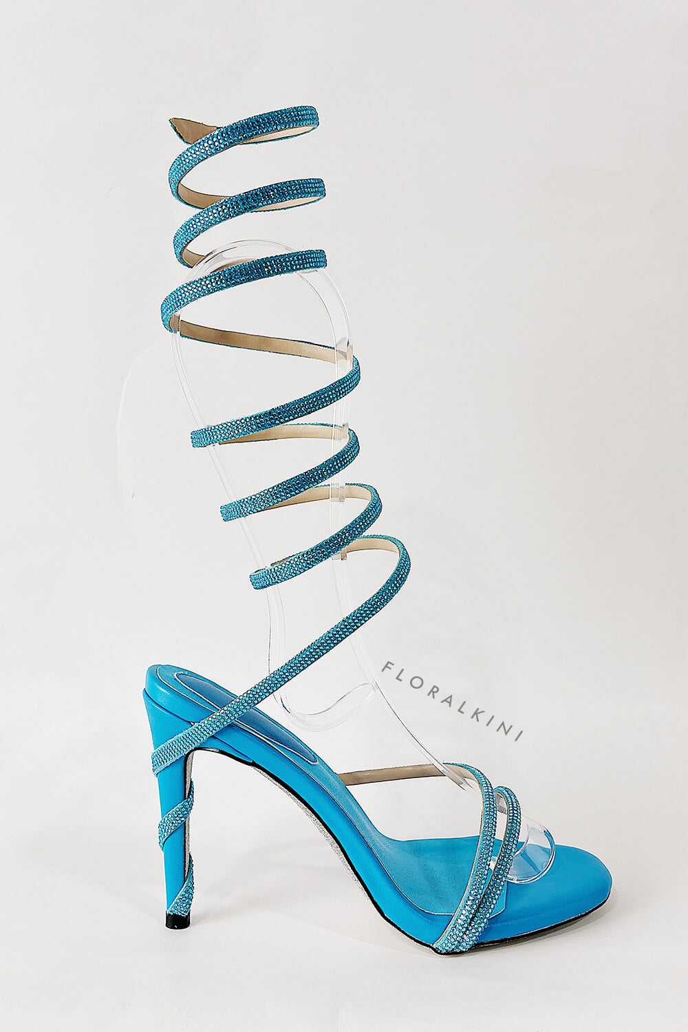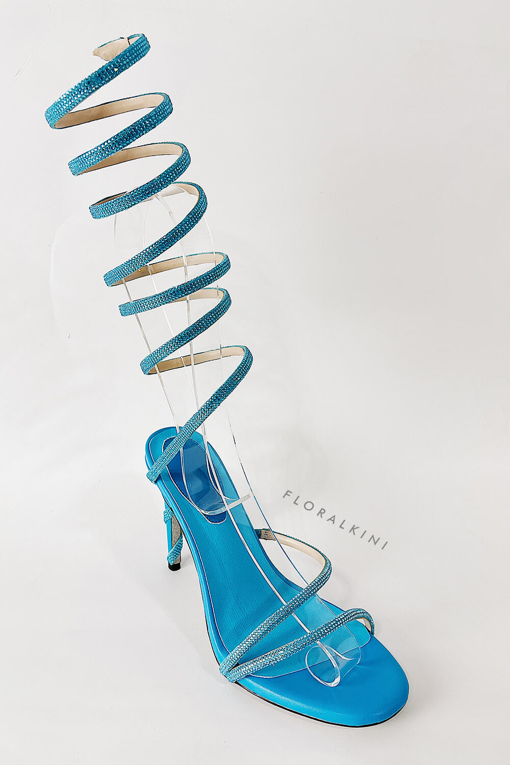 Faux Suede Crystal Embellished Ankle Wrap Open Toe High Heel Sandals