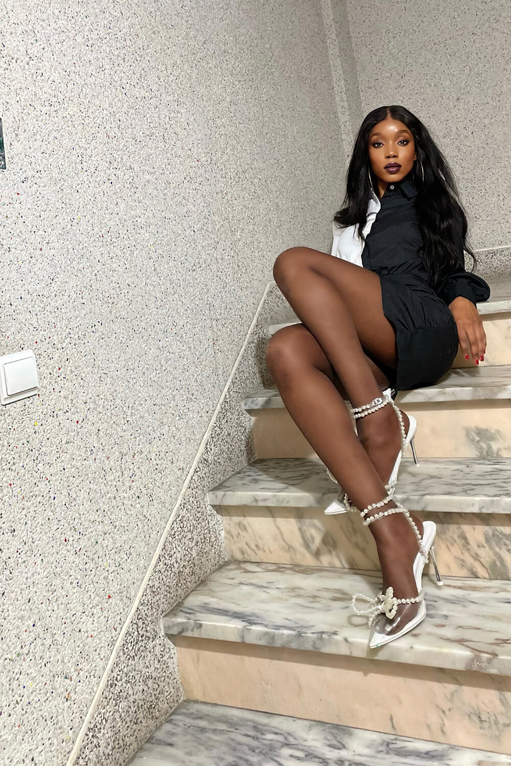 Pearl Bow Clear Perspex Wrap Around Pointed Toe Stiletto Court Heels