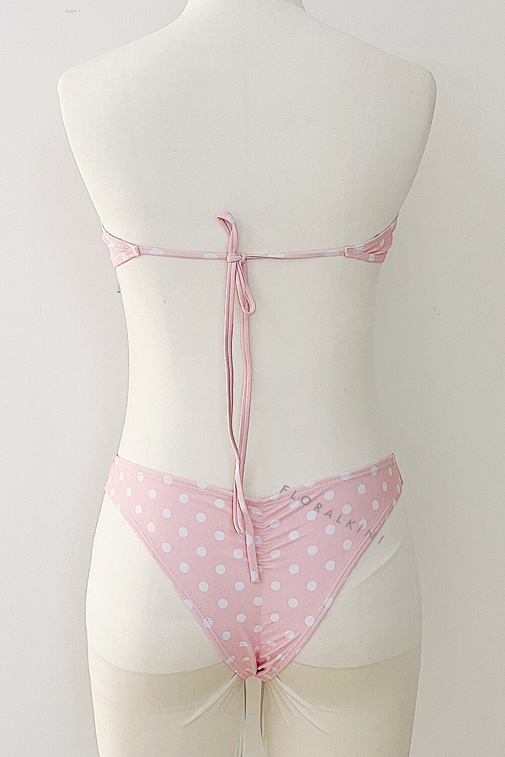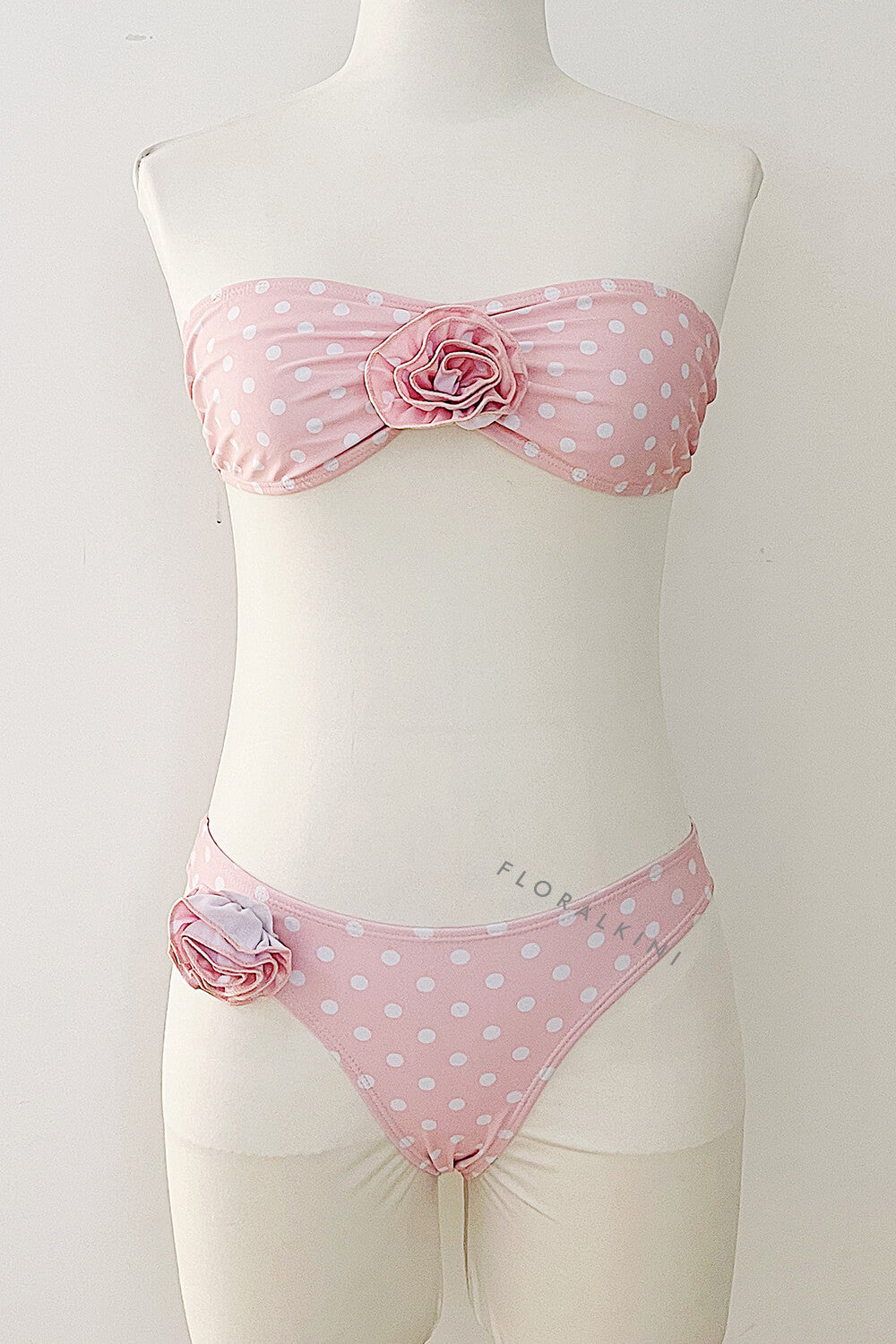 Pink Polka Dot Rosette Bandeau High-Cut Bikini Set
