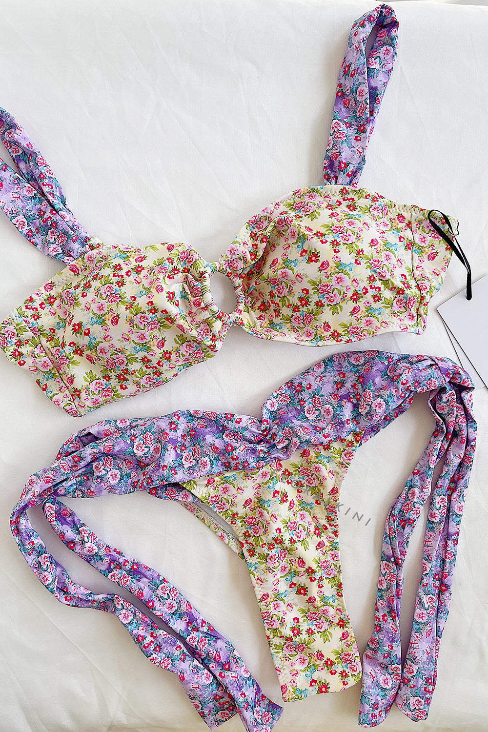 Floral Print O-Ring Front Tie Side Bikini Set