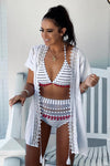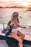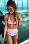 Blue White Striped Pom Pom Mesh High Waisted Bikini Bottom