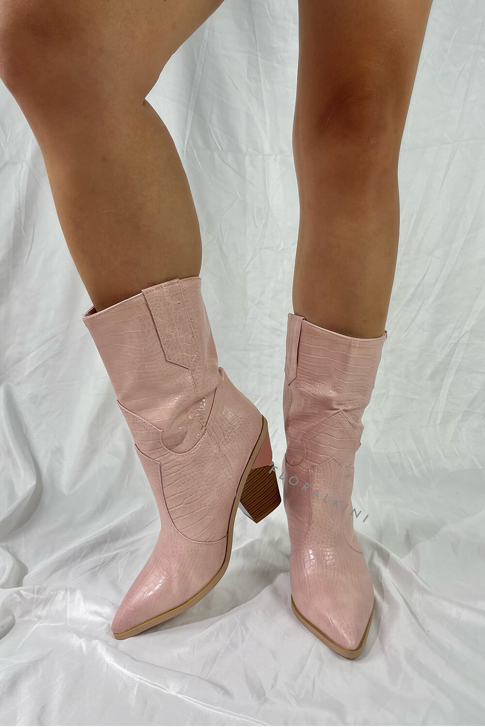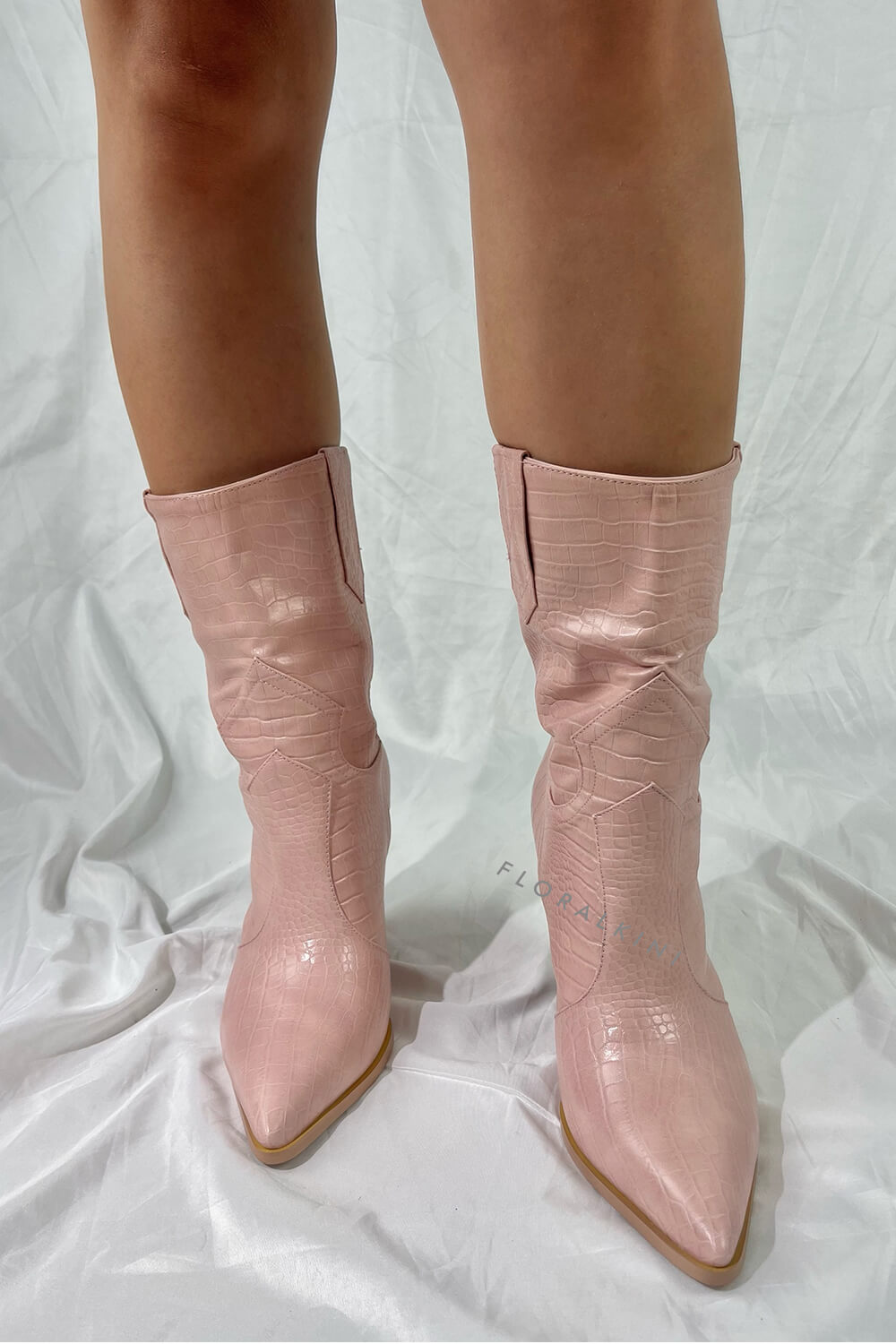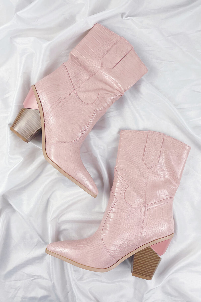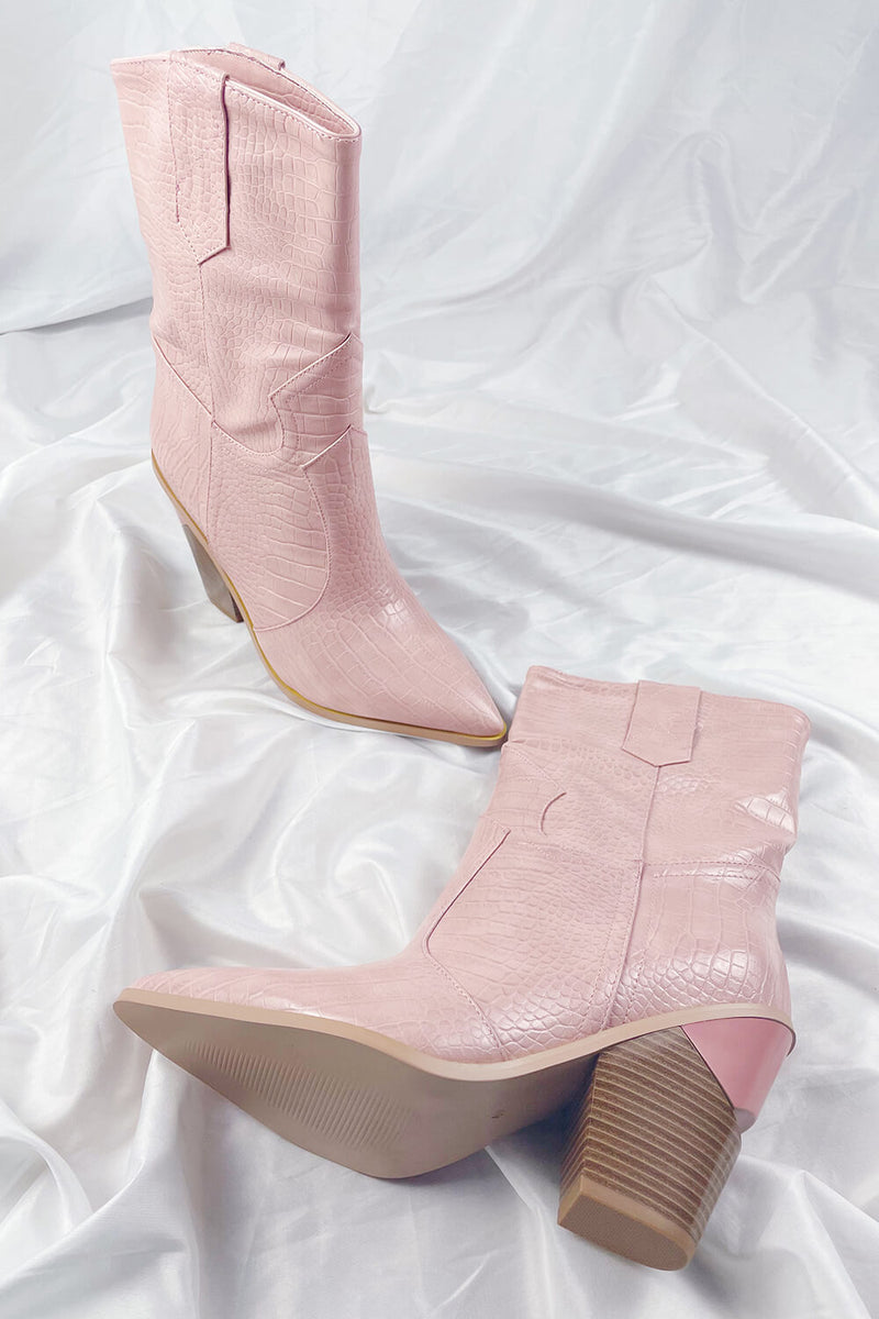 Pink Croc Cut-Out Heel Mid Western Cowboy Boots