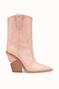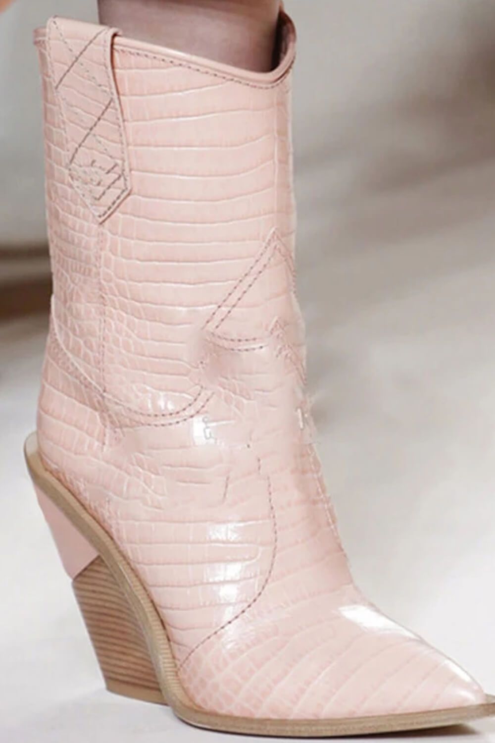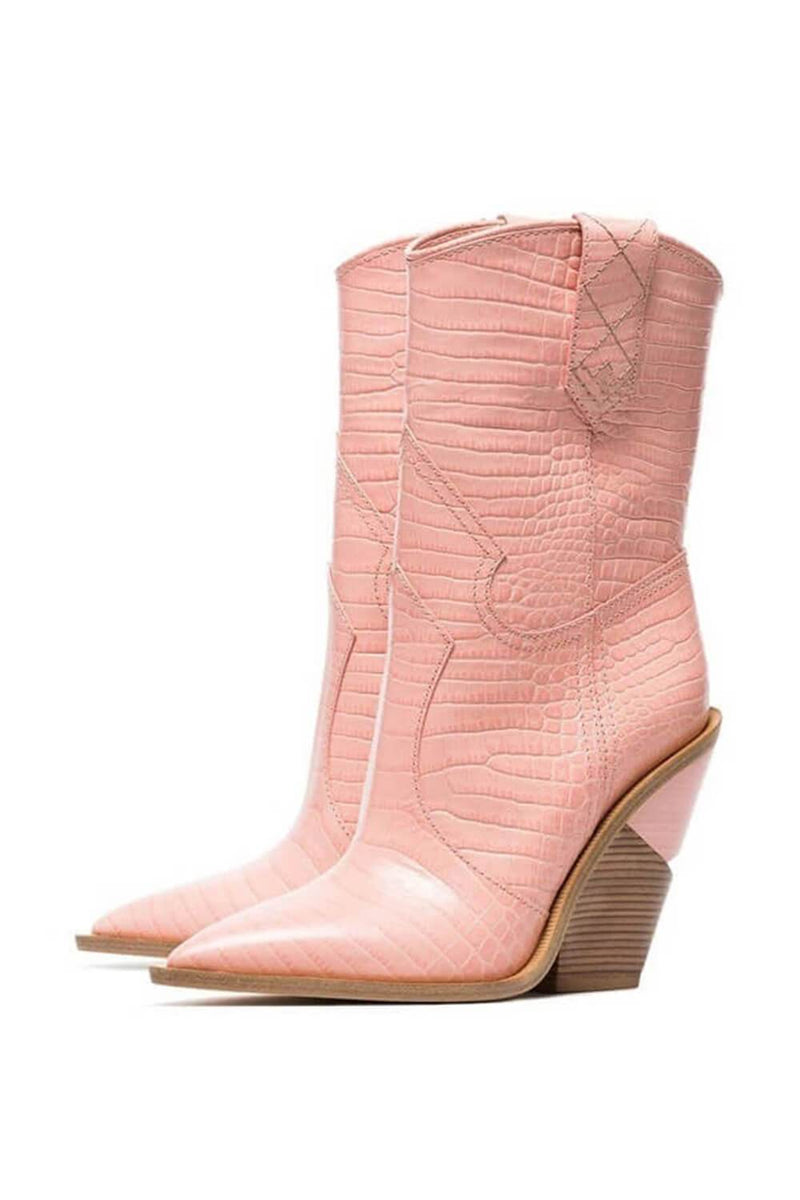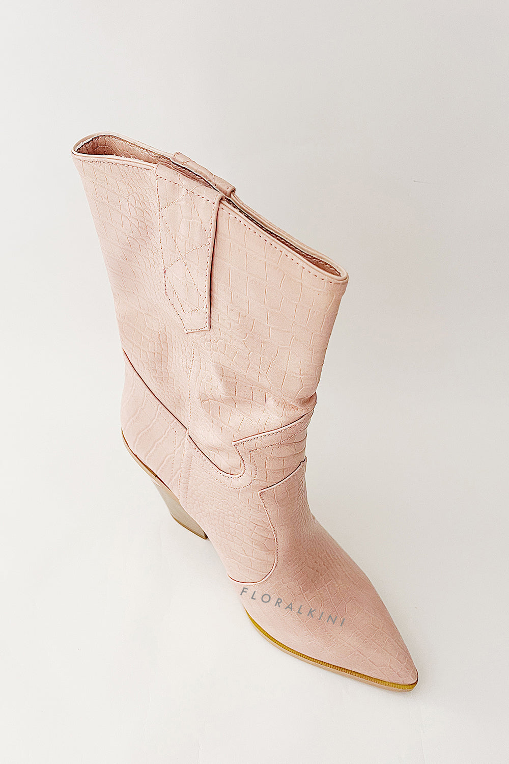 Pink Croc Cut-Out Heel Mid Western Cowboy Boots
