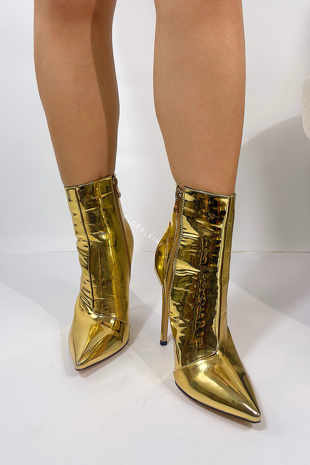 Metallic Gold Pointed Stiletto Heeled Ankle Boots
